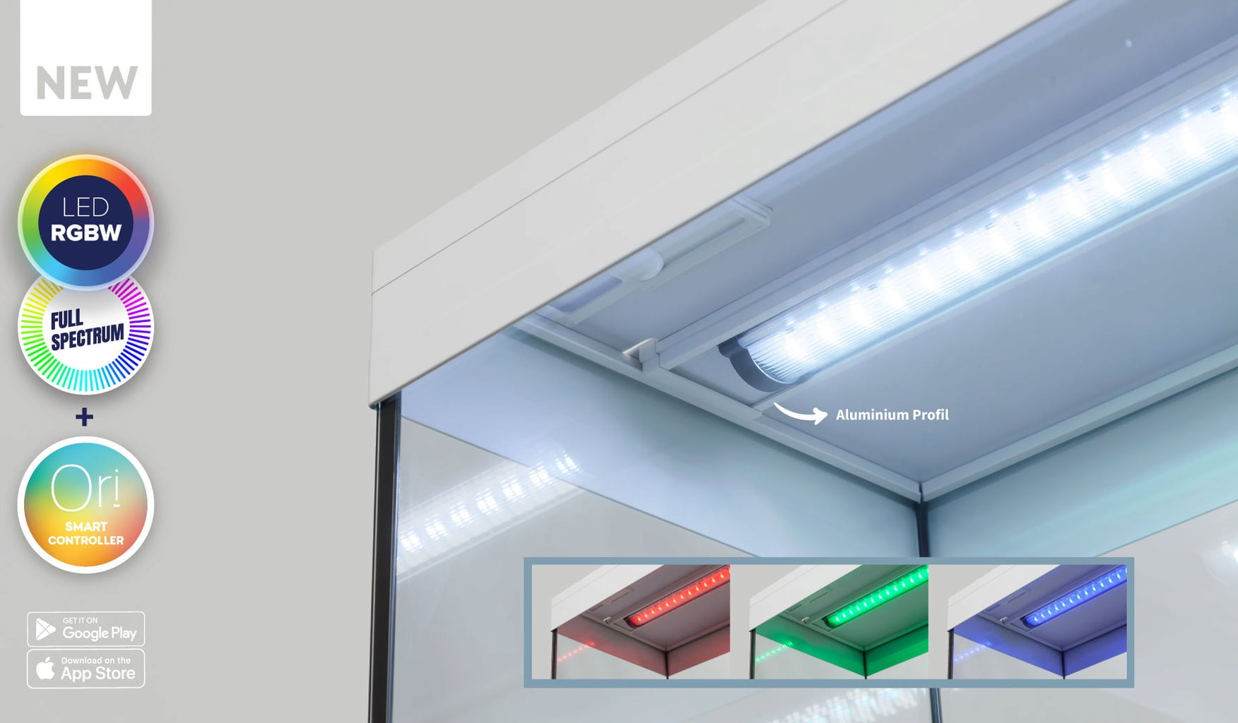 Mit Splendid Ultra 200 erhältst du ein sofort einsatzbereites Aquarium, hochwertig verarbeitet und ausgestattet mit zuverlässiger Technik: Ein komplettes LED-Beleuchtungssystem mit RGBW-Technologie, Biobox Innenfiltersystem mit umweltfreundlichen Filterkartuschen, Heizung, Pumpe und der ORI Smart Controller sind im Lieferumfang enthalten.