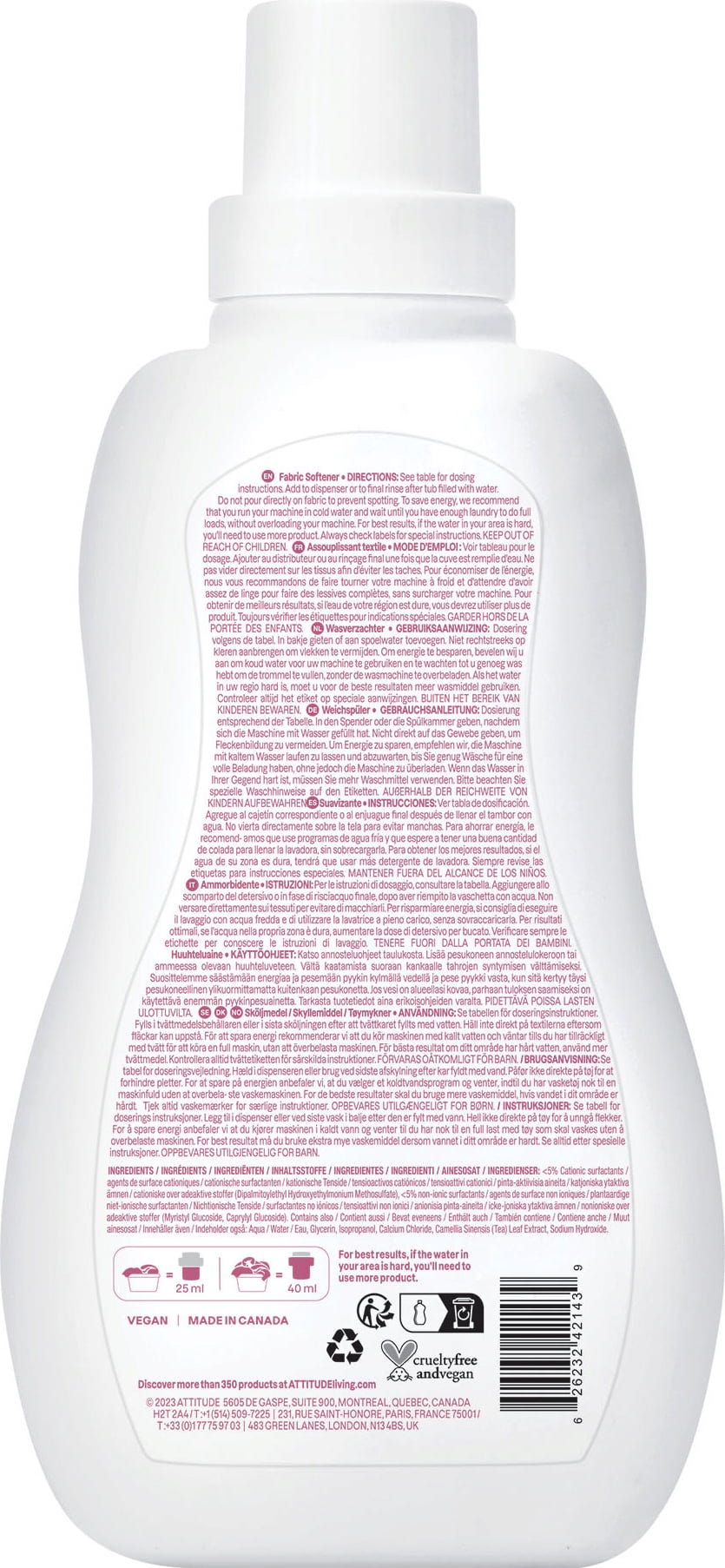 Der natürliche Baby Weichspüler von ATTITUDE ist frei von Duft- und Farbstoffen und sorgt für weiche, flauschige Wäsche.