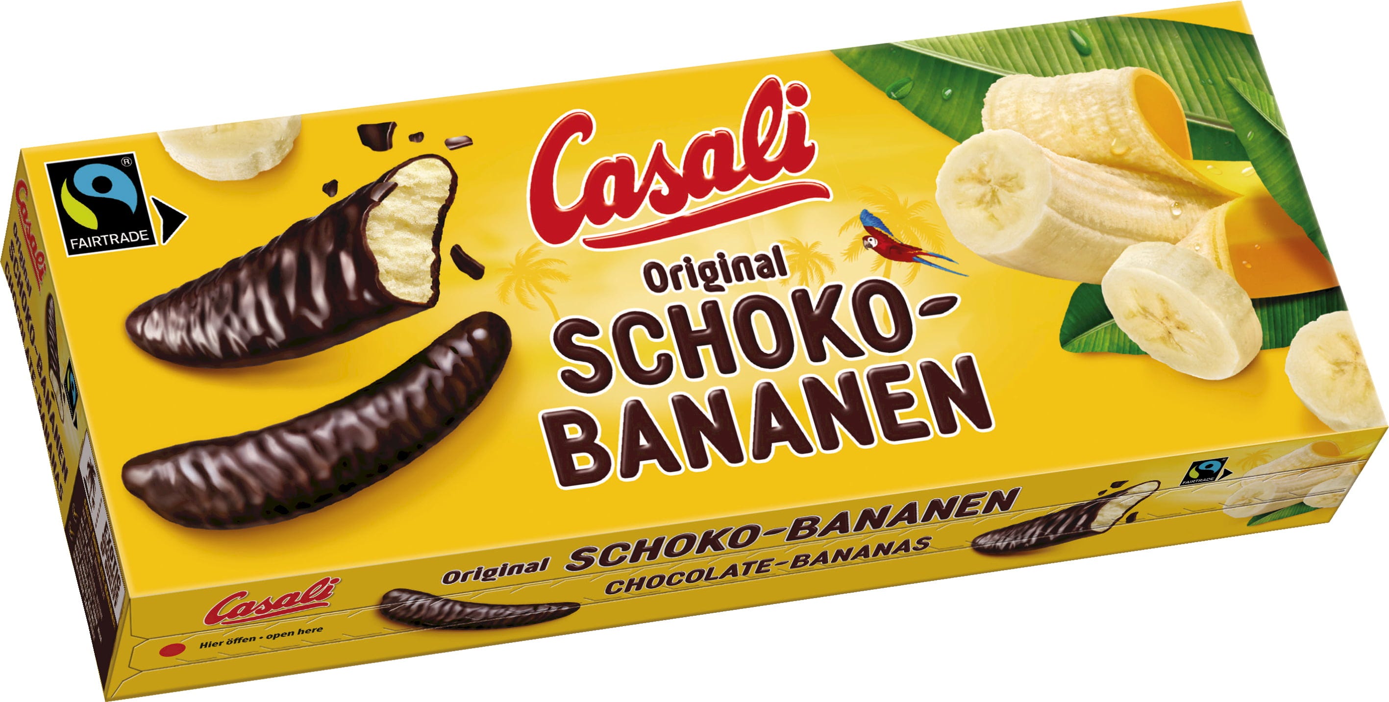Außen eine Hülle aus knackiger Schokolade und innen eine Füllung aus fruchtigem Chiquita Bananenschaum - das sind die köstlichen Schokobananen von Casali. Ob zum selbst Naschen oder zum Verschenken, diese Süßigkeit ist bei Groß und Klein gleichermaßen beliebt.