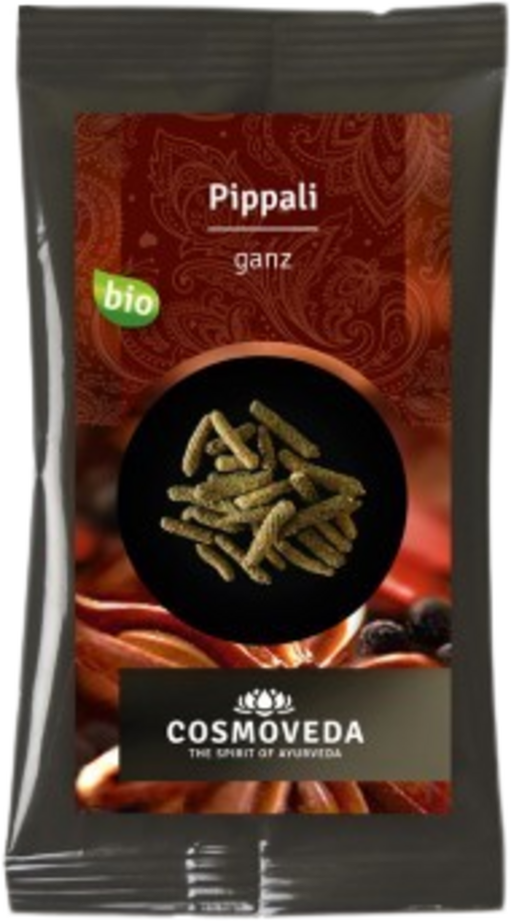 - Er besitzt eine süßlich wärmende, anregende Schärfe. Pippali ist milder als schwarzer Pfeffer.