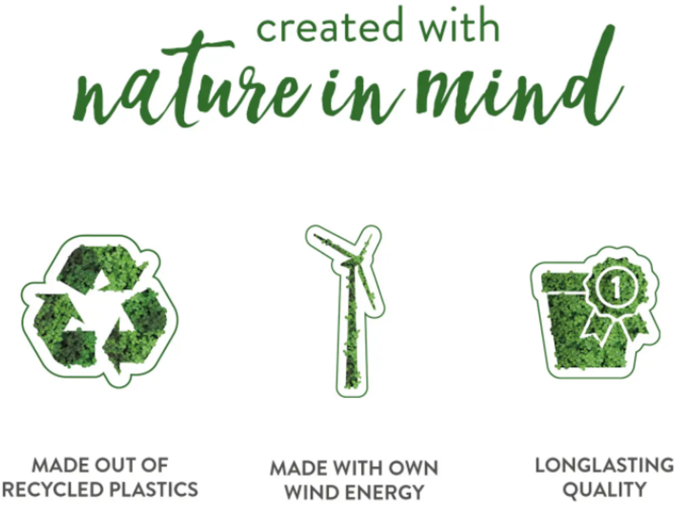Produkteigenschaften: 100% recycelbar, Bruchfest, Frostbeständig, Nachhaltig hergestellt, UV-beständig, Wetterfest
