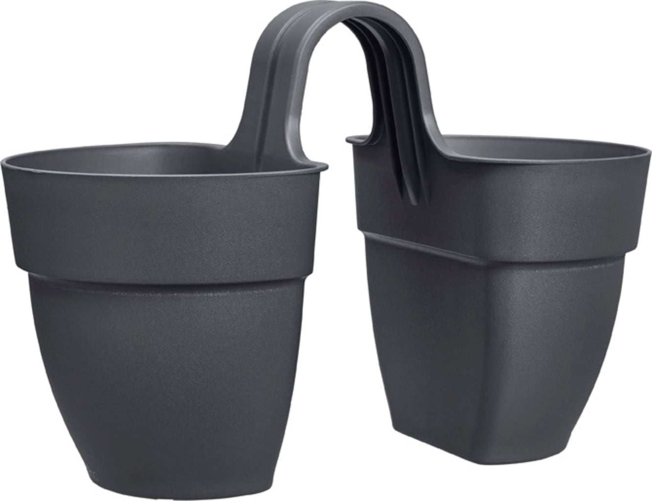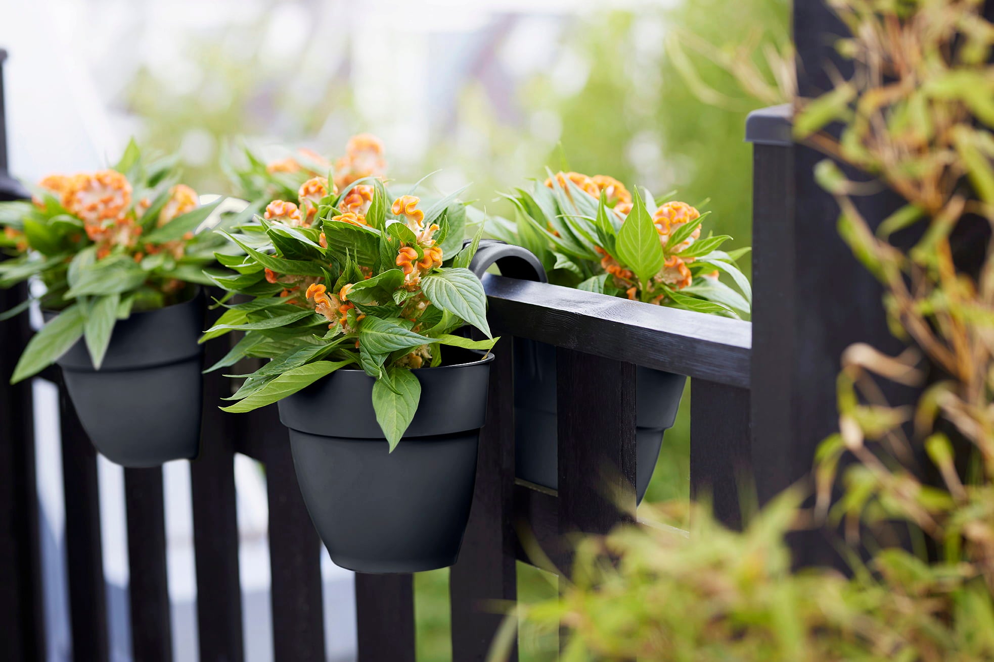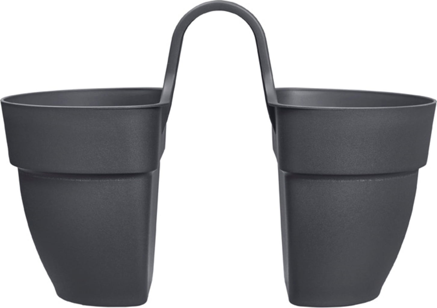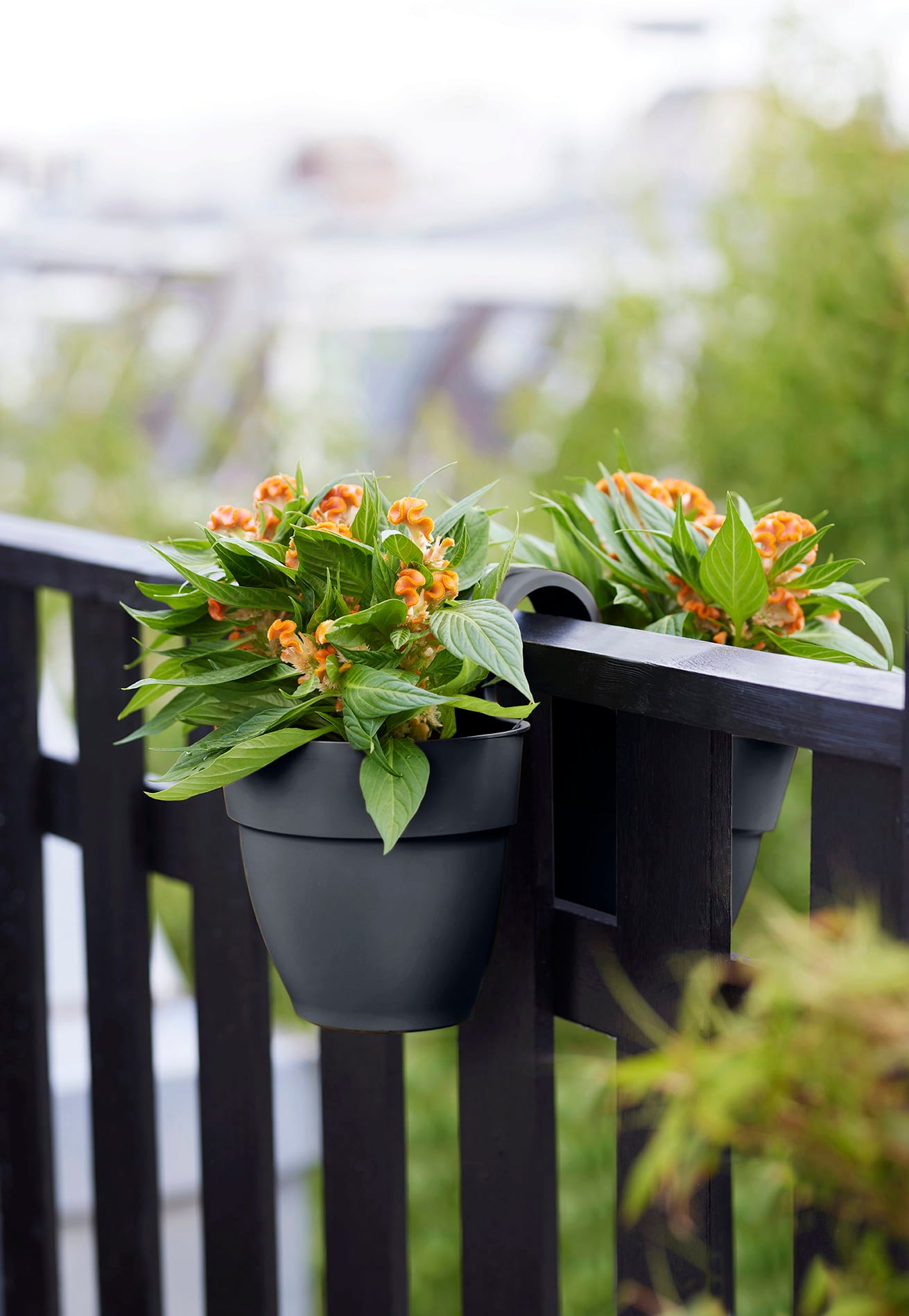 Dieser zweiteilige Blumentopf ist eine ganz besondere Möglichkeit, deinen Balkon zu begrünen und eine tolle Ergänzung zu klassischen Balkonkästen. Seine Aufhängung in der Mitte ermöglicht es, sowohl die Innen- als auch die Außenseite des Balkongeländers mit Pflanzen zu schmücken und diesen so von jeder Seite zum Hingucker zu machen. Mit seinen geschwungenen Formen bringt dieser Blumentopf üppig wachsende Pflanzen besonders gut zur Geltung.