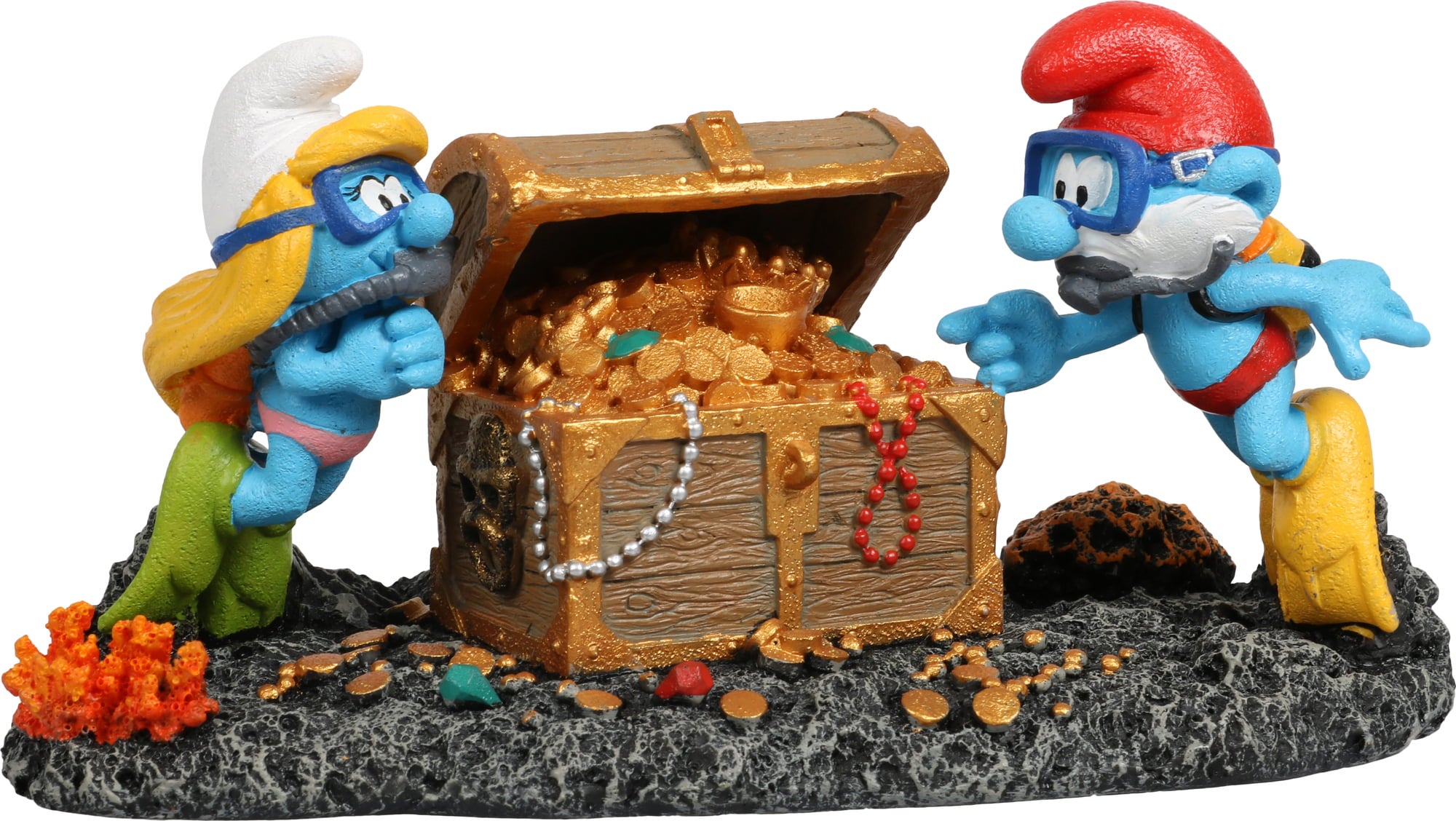 Papa Schlumpf und Schlumpfine entdecken jenen Schatz, den du schon immer in deinem Aquarium vermutet hast! Das abenteuerliche Motiv ist aus hochwertigem Polyesterharz gefertigt und punktet mit Detailreichtum und Farbenpracht.