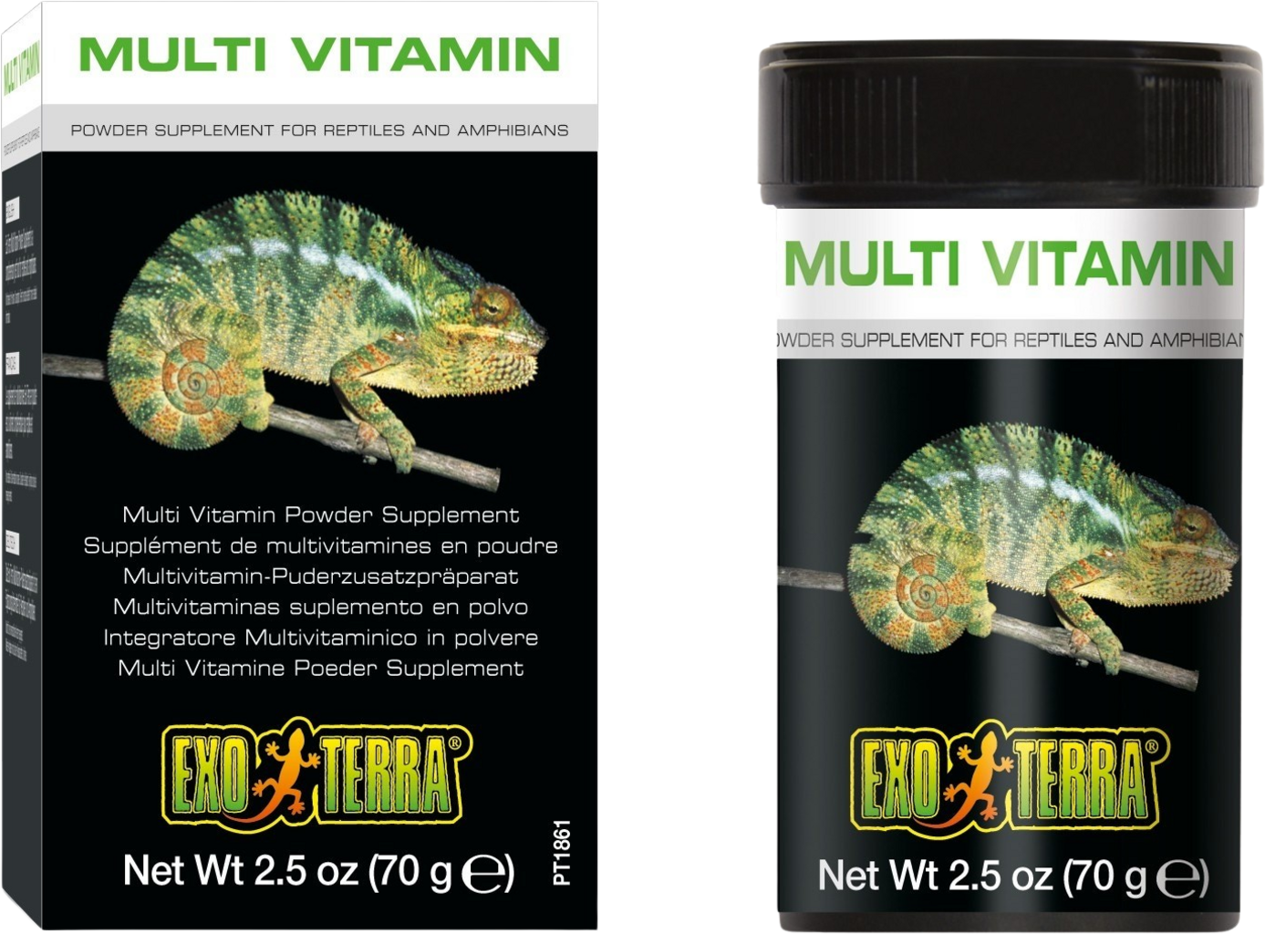 Das Exo Terra Multivitamin ist ein Zusatzfutter in Pulverform, das optimal auf die Ernährungsbedürfnisse von Reptilien und Amphibien angepasst ist. Es versorgt sie mit dem notwendigen täglichen Bedarf an Vitaminen, Aminosäuren und Spurenelementen und sorgt somit für ausreichend Energie.