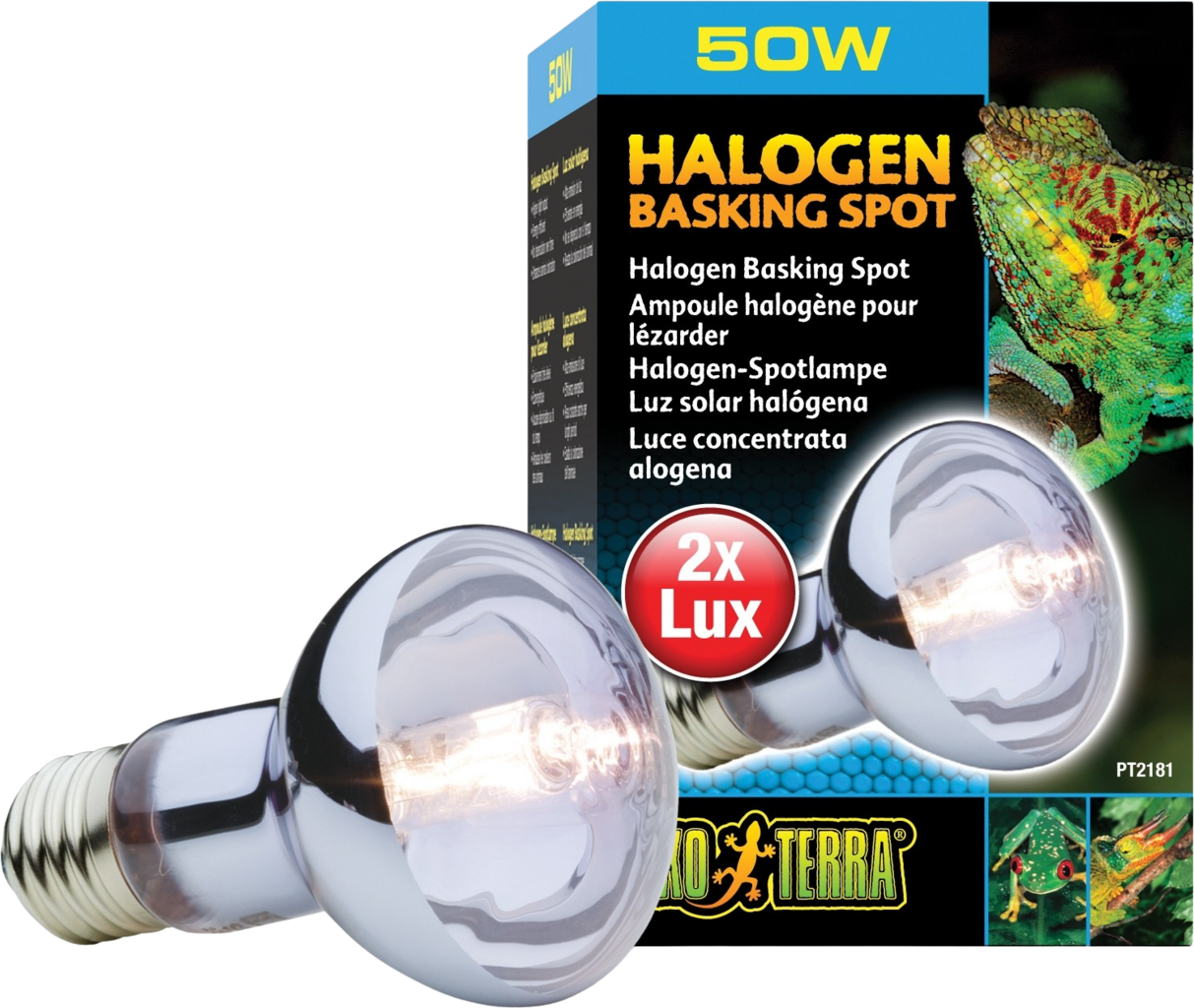 Exo Terra Sun Glo ist eine Breitspektrum-Halogenlampe, die natürliche Tageslichtverhältnisse in einem Terrarium schafft. Halogenlampen haben dank des Halogengases eine längere Lebensdauer, erzeugen höhere Temperaturen und ein natürliches, weißes Licht. Sie haben einen hohen Ausstoß an UVA- und Infrarot-Strahlen, sind dabei aber äußerst energieeffizient. Die Sun Glo Halogen liefert eine Farbtemperatur von 4750 K und zaubert dabei optimale Licht- und Wärmeverhältnisse her.