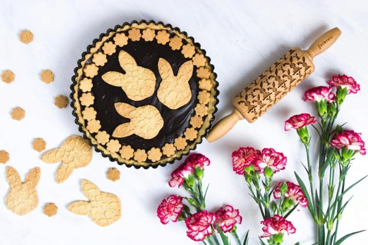 Kleine und große Osterhäschen zieren diese aufwendig gravierte Motivteigrolle aus hochwertigem Buchenholz. Perfekt für kleine Köstlichkeiten zu Ostern, denn so einfach war das Backen von dekorativ verzierten Plätzchen noch nie: Über den ausgerollten Teig rollen und anschließend nach Herzenslust mit Teigrädchen und Ausstechern in Form bringen, backen, fertig!