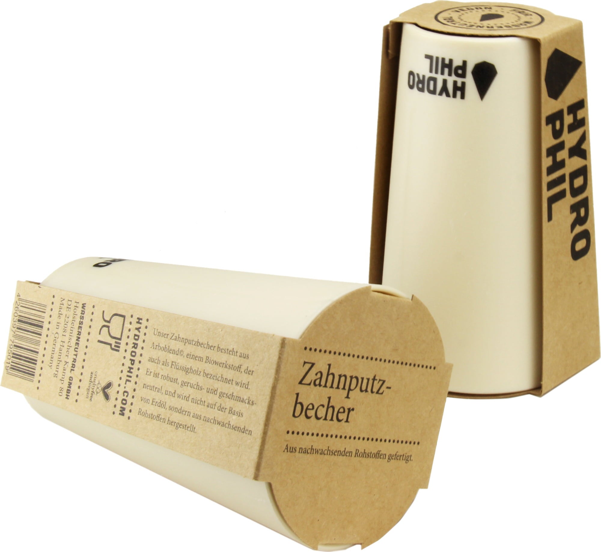 Sieht aus wie Plastik, ist es aber nicht! Der innovative Zahnputzbecher von Hydrophil überzeugt mit Stabilität, Strapazierbarkeit sowie Funktionalität und ist obendrein aus vollkommen natürlichen Materialien gefertigt. Er wird in Deutschland aus Arboblend V hergestellt, einem außergewöhnlichen Material, das aus Holzabfällen, Zuckerstärke und anderen natürlichen Rohstoffen besteht und auch als "Flüssigholz" bekannt ist. Zudem ist der Becher lebensmittelecht und damit perfekt, um darin das Kräutermundwasser anzumischen.