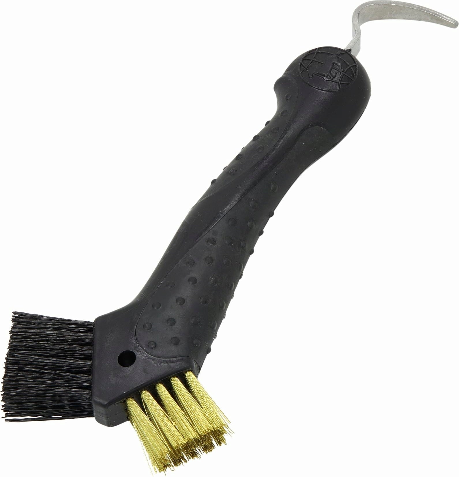 Praktischer Hufauskratzer mit weichem und hartem Bürstenkopf zur präzisen Schmutzenfernung. Ausgestattet mit einem Anti-Rutsch-Griff.