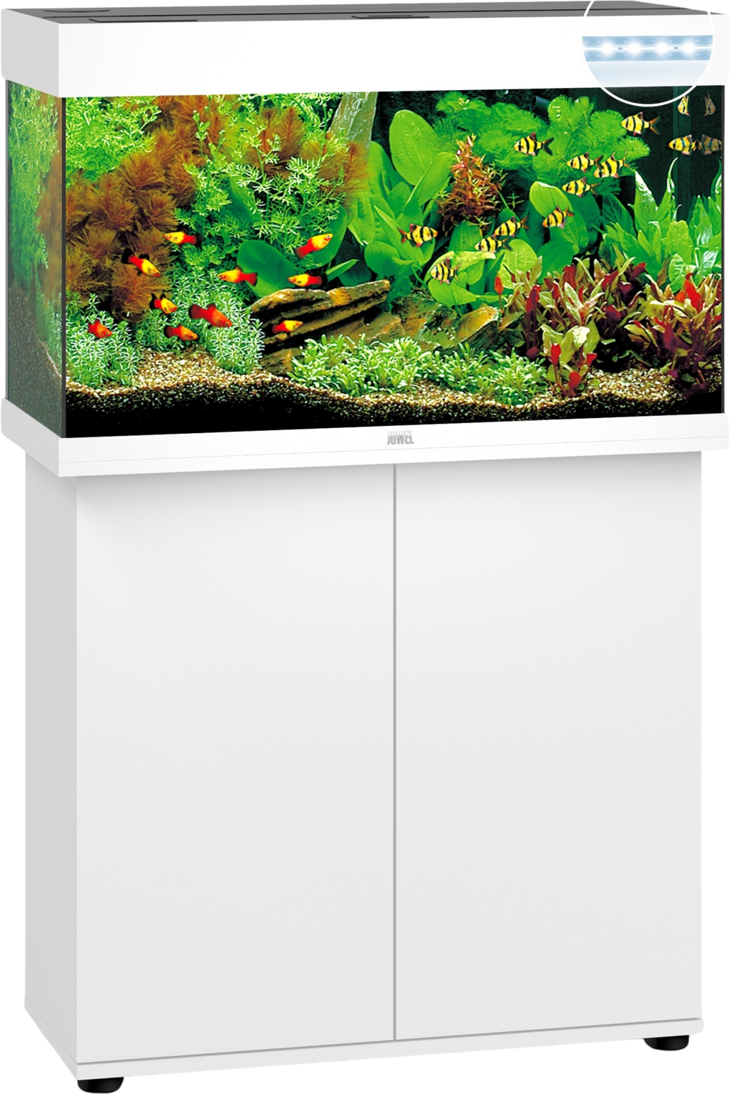 Die Juwel RIO 125 LED Kombination ist ein echter Klassiker und das kleinste Aquarium der RIO LED Linie. Mit seiner kompakten Grundfläche von 81 x 36 cm und dem klassischen, rechteckigen Design passt sich das RIO 125 LED jedem Wohnstil problemlos an.