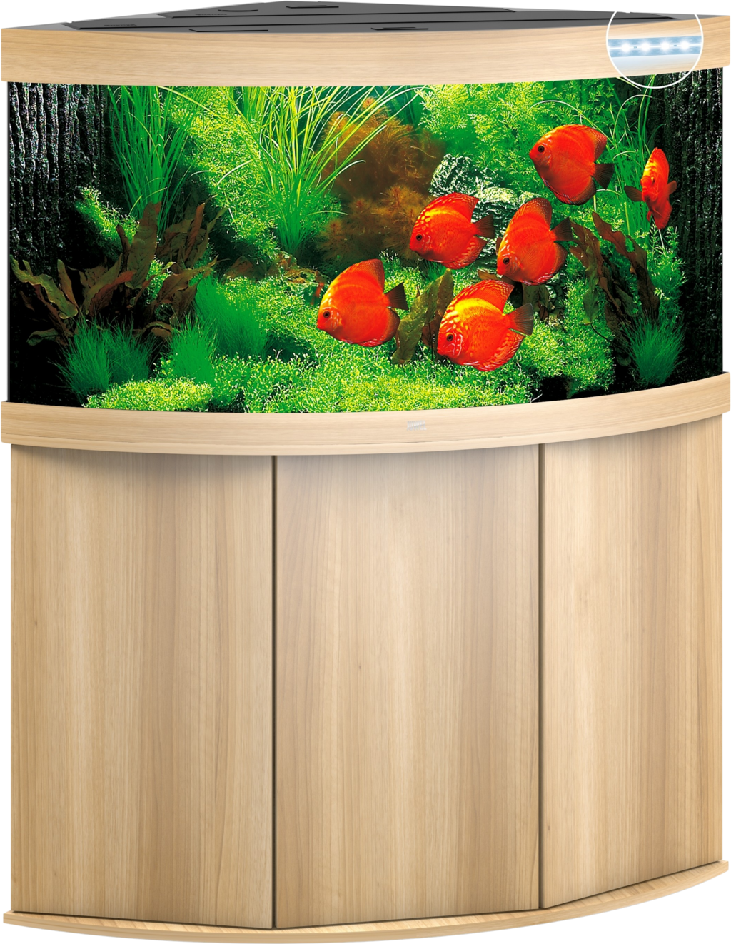 Die Juwel TRIGON 350 LED Aquarien Kombination mit Unterschrank setzt sich perfekt in Szene: dank der Tiefenwirkung in bestechender Form fügt sich das TRIGON 350 LED harmonisch in jede Zimmerecke nahtlos ein und schafft einen Ruhepol für dich und deine ganze Familie! Mit seiner besonderen Tiefe von 87 cm und der gebogenen Frontscheibe in jeder Ecke, sowie der Ausstattung von vier Leuchtstoffröhren brilliert das TRIGON 350 LED und bietet sogar großen Fischen und auch Meeresbewohnern ein Zuhause.
