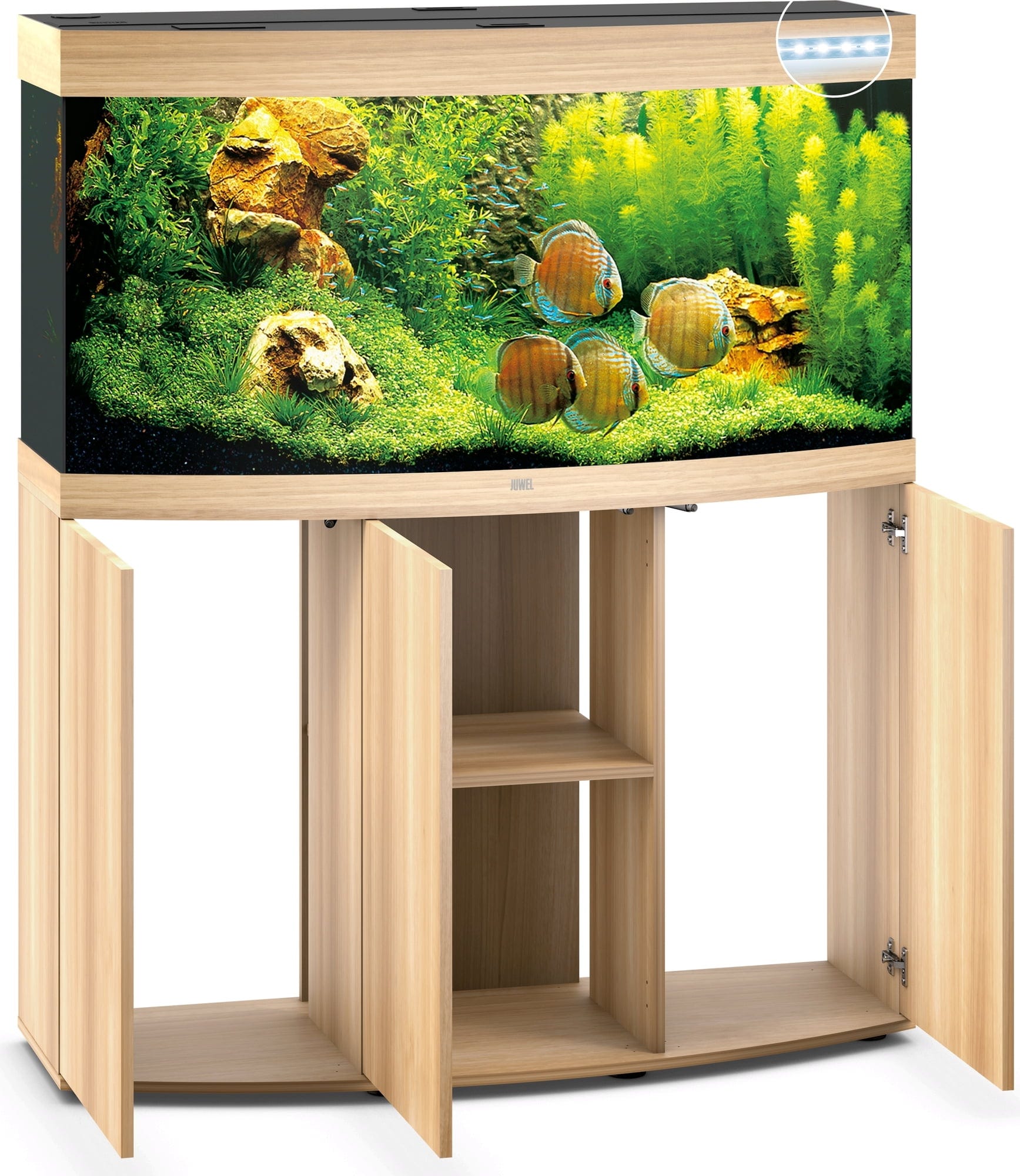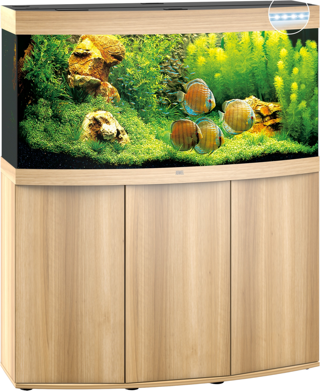 Die Juwel Vision 260 LED Kombination mit Unterschrank ist ein Synonym für Exklusivität: mit seiner gebogenen Frontscheibe ist es geradezu der Ausdruck für Eleganz und setzt das lebende Bild eines Aquariums gekonnt in Szene. Mit einer Breite von 121 cm bietet dir das Vision 260 LED viel Raum für Kreativität.