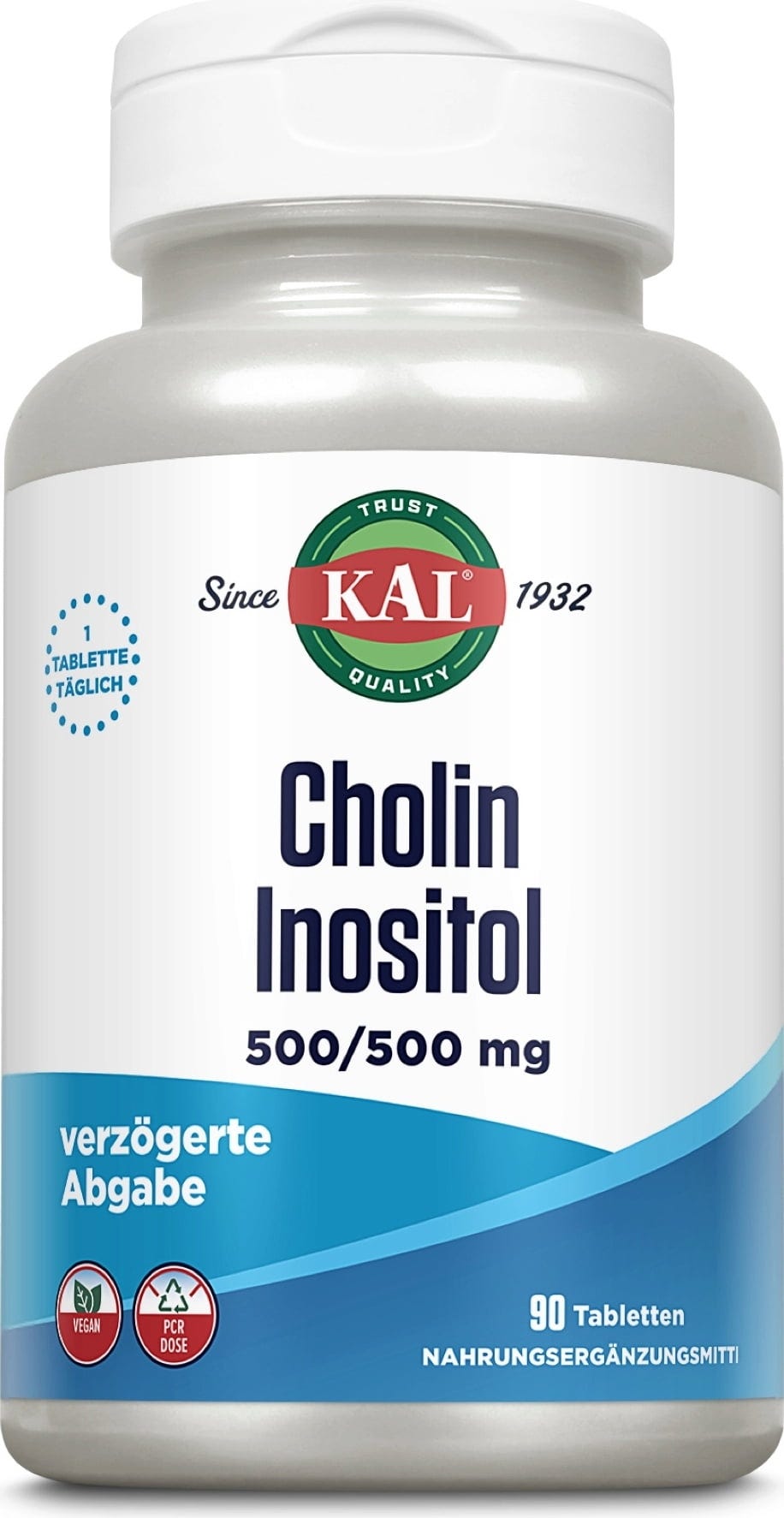 Sowohl Cholin als auch Inositol gehören zu den B-Vitaminen und sind Bausteine von Lecithin. Cholin und Inositol von KAL liefert 500 mg je B-Vitamin.
