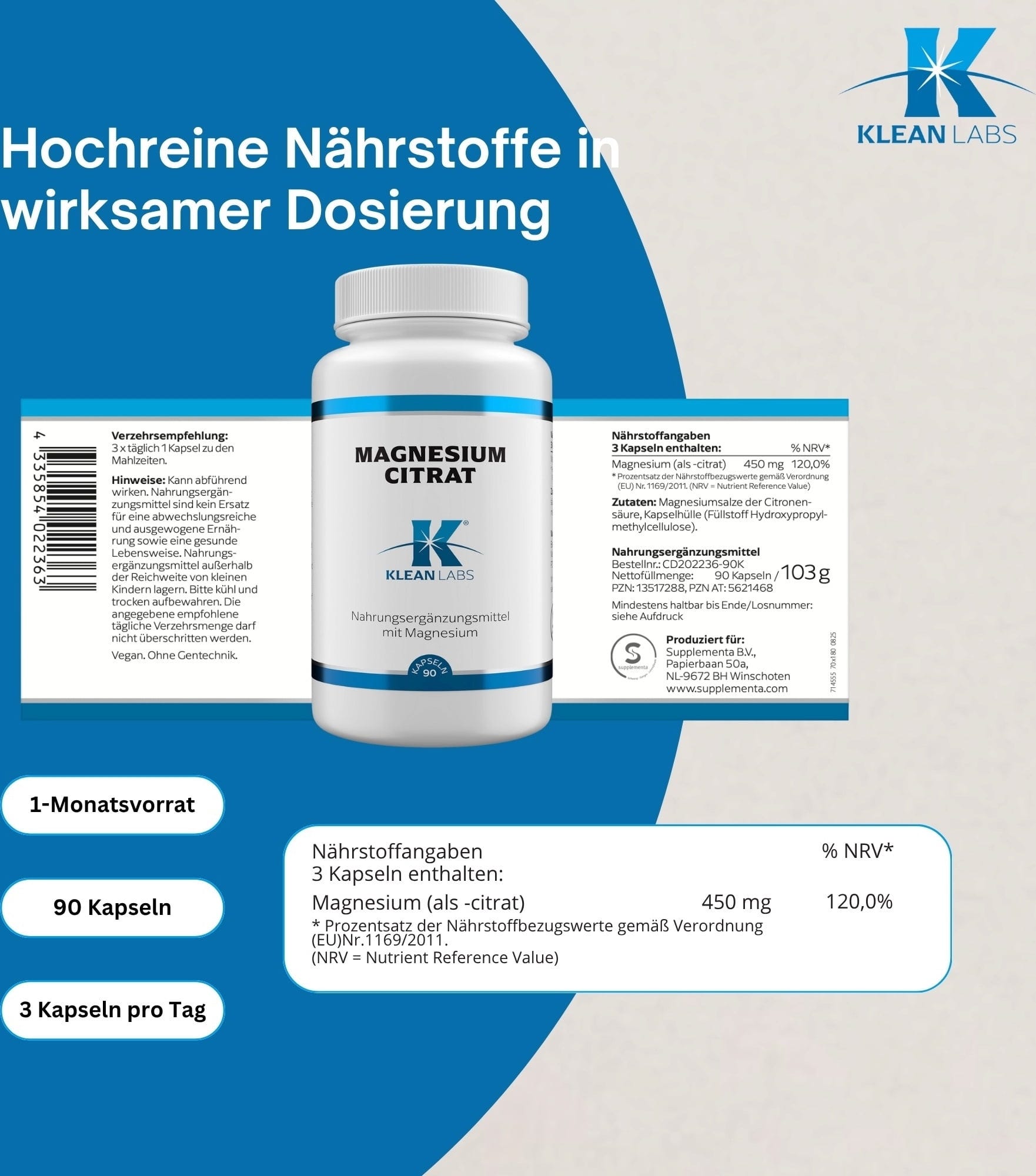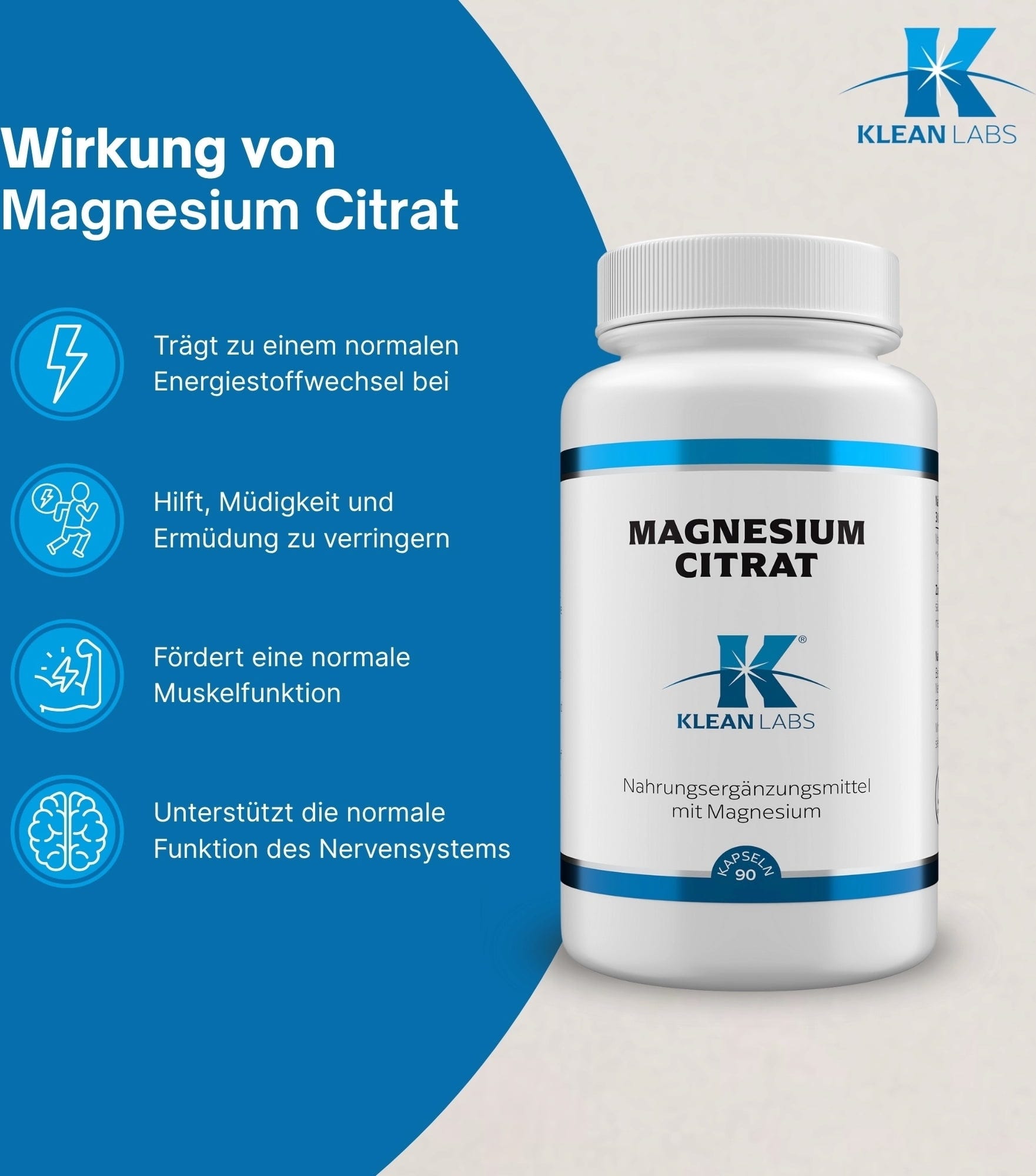 KLEAN LABS Magnesium Citrat 150mg, 90 Kapseln
