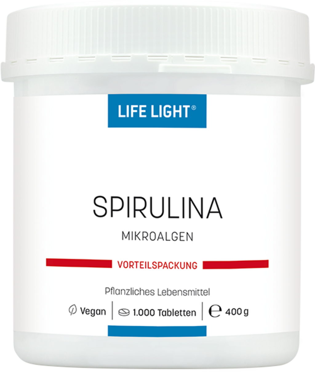 Die Spirulina Tabletten von Life Light® enthalten hochwertige Süßwasser-Mikroalgen (Spirulina platensis). Sie sind reich an natürlichem Chlorophyll und eignen sich zur Verwendung in einer vegetarischen und veganen Ernährung.