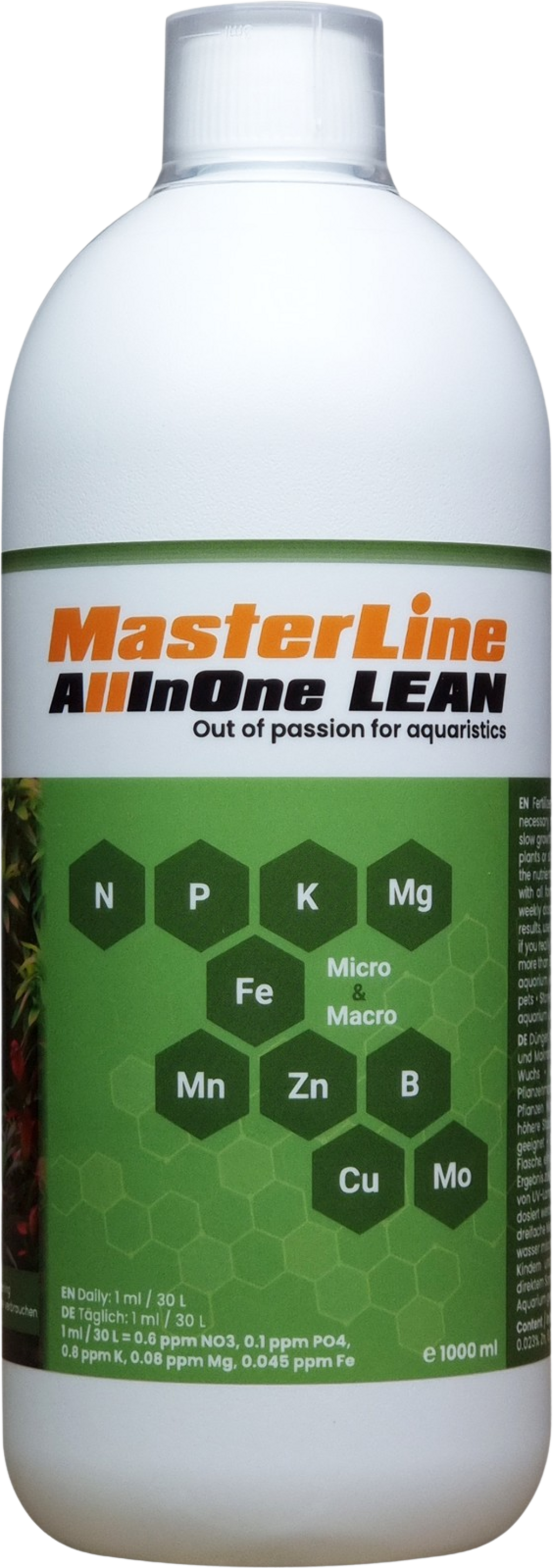 MasterLine AllinOne Lean enthält alle wichtigen Mikro- und Makronährstoffe für gesundes Wachstum ohne Mangelerscheinungen: Stickstoff, Phosphor, Kalium, Magnesium, Eisen, Mangan, Zink, Bor, Kupfer und Molybdän. Der Kombidünger wurde speziell für Becken entwickelt, die Soil als Bodengrund nutzen und zusätzliche CO2-Zugaben bzw. tägliche Düngung erhalten. Das Ergebnis: Die Pflanzen wachsen langsamer, aber gesünder und erlangen nachhaltige Vitalität.