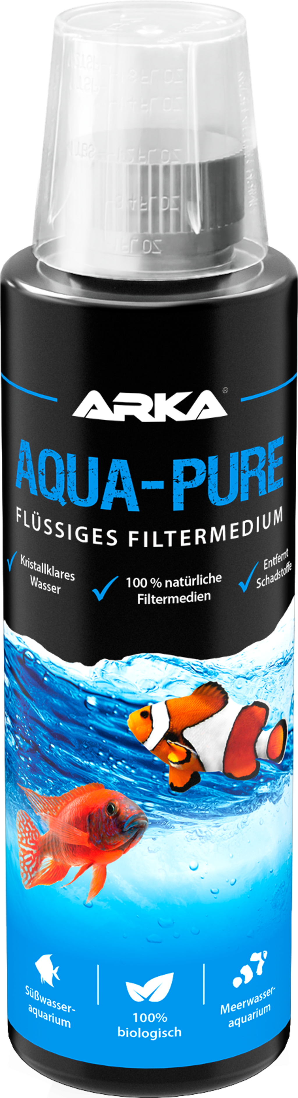 Aqua-Pure von ARKA sorgt für ein kristallklares Aquariumwasser. Die speziell entwickelte Mischung aus nützlichen Bakterienkulturen sorgen für ein sauberes und reines Süßwasser- sowie Meerwasser-Aquarium. Speziell für die Pflege und zur Anwendung bei Problemfällen in allen Meer- und Süßwasseraquarien geeignet.