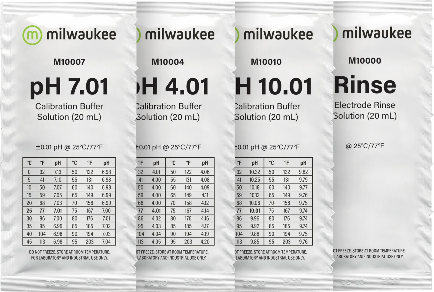 Die pH-Puffer ermöglichen die korrekte Verwendung von Elektroden und sichern die Richtigkeit und Zuverlässigkeit der durchführten Messung. Die Elektrodenspüllösung kann als eine Zwischenspülung zwischen den Proben oder Kalibrierlösungen verwendet werden. Sie eignet sich aber auch zum Entfernen von basischen Salzablagerungen auf der Sonde oder Kappe, welche während des Verdunstens der Aufbewahrungslösung entstehen. Um die Messung so genau wie möglich zu gestalten, sollten solche Salzablagerungen vor der Messung oder der Kalibrierung beseitigt werden!