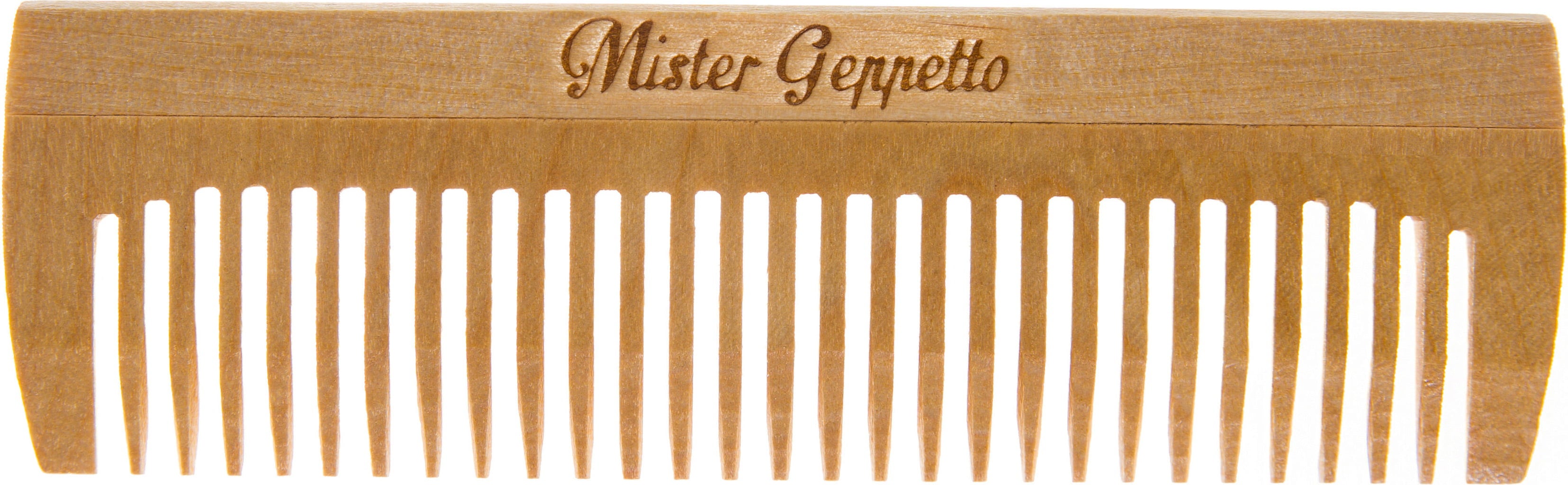 Mister Geppetto Holzkämme werden präzise und sorgfältig geschliffen. Sie haben keinerlei Risse, Kerben oder scharfe Kanten, die Haare oder Kopfhaut beschädigen könnten. Das perfekte Produkt für gesundes, seidiges Haar!