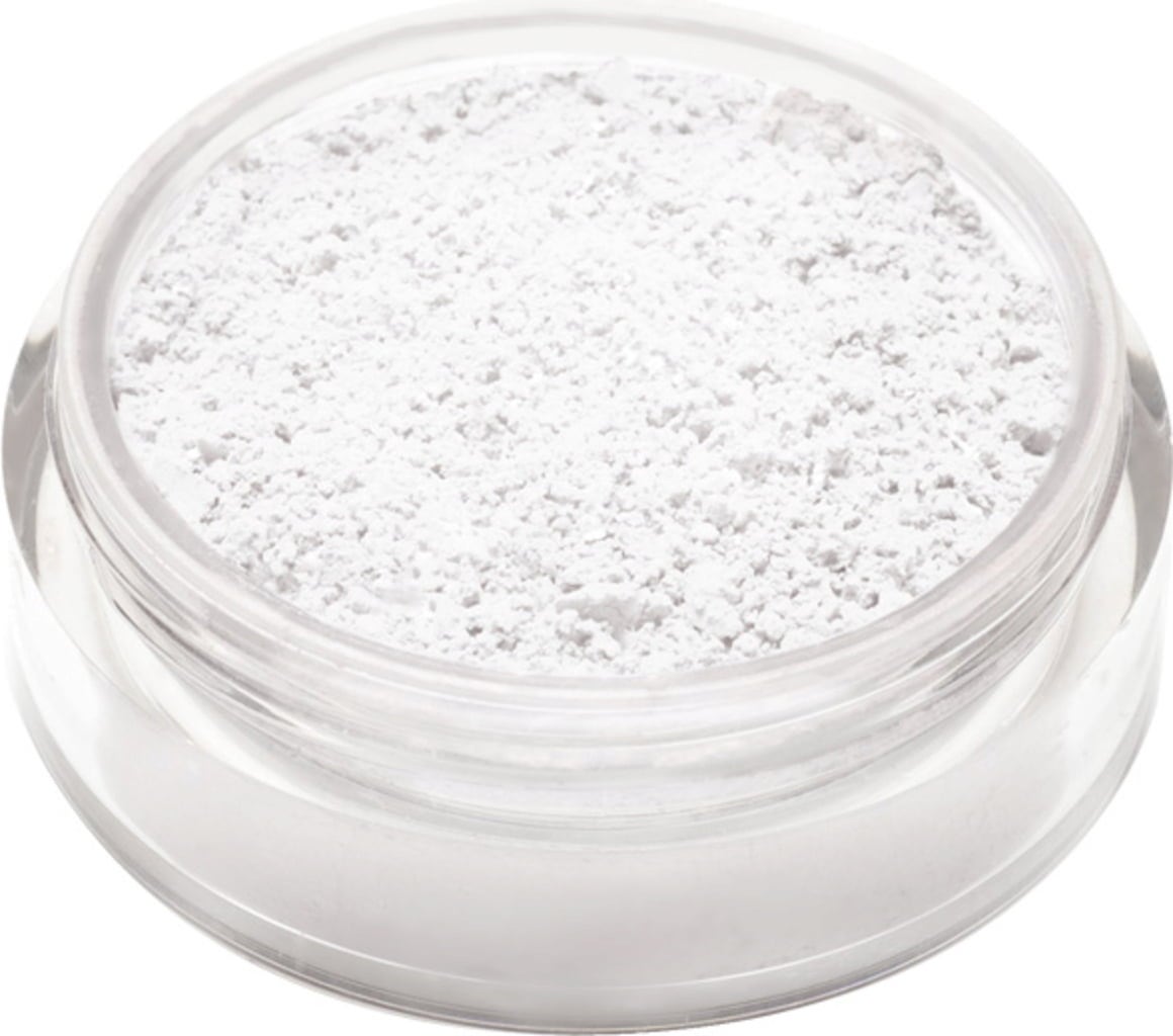 - Streue eine kleine Menge des Puders in den Glasdeckel und nimm dieses mit einem Puderpinsel auf. Verteile es dann in kreisenden Bewegungen auf deiner Haut.