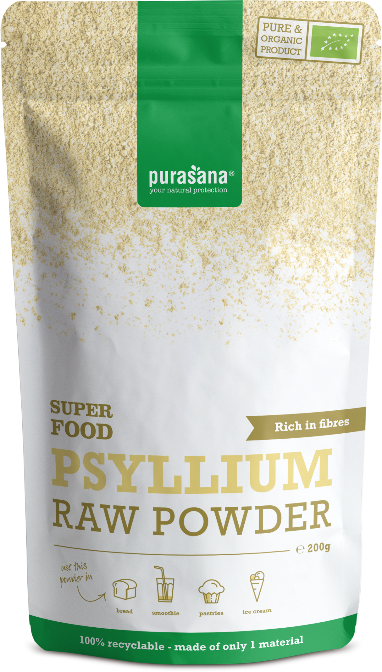 Das Flohsamenpulver von Purasana enthält von Natur aus Ballaststoffe was es zu einem wertvollen Produkt macht. Das Pulver wird aus den Samen der in Indien wachsenden Pflanze Plantago ovata hergestellt und schonend verarbeitet.