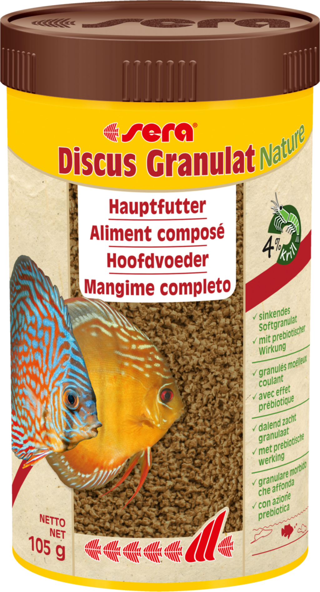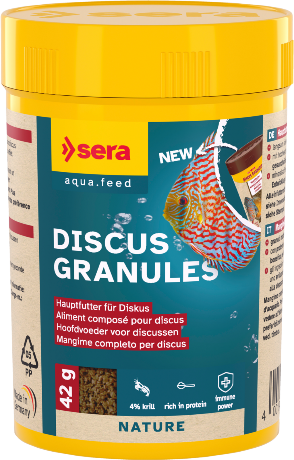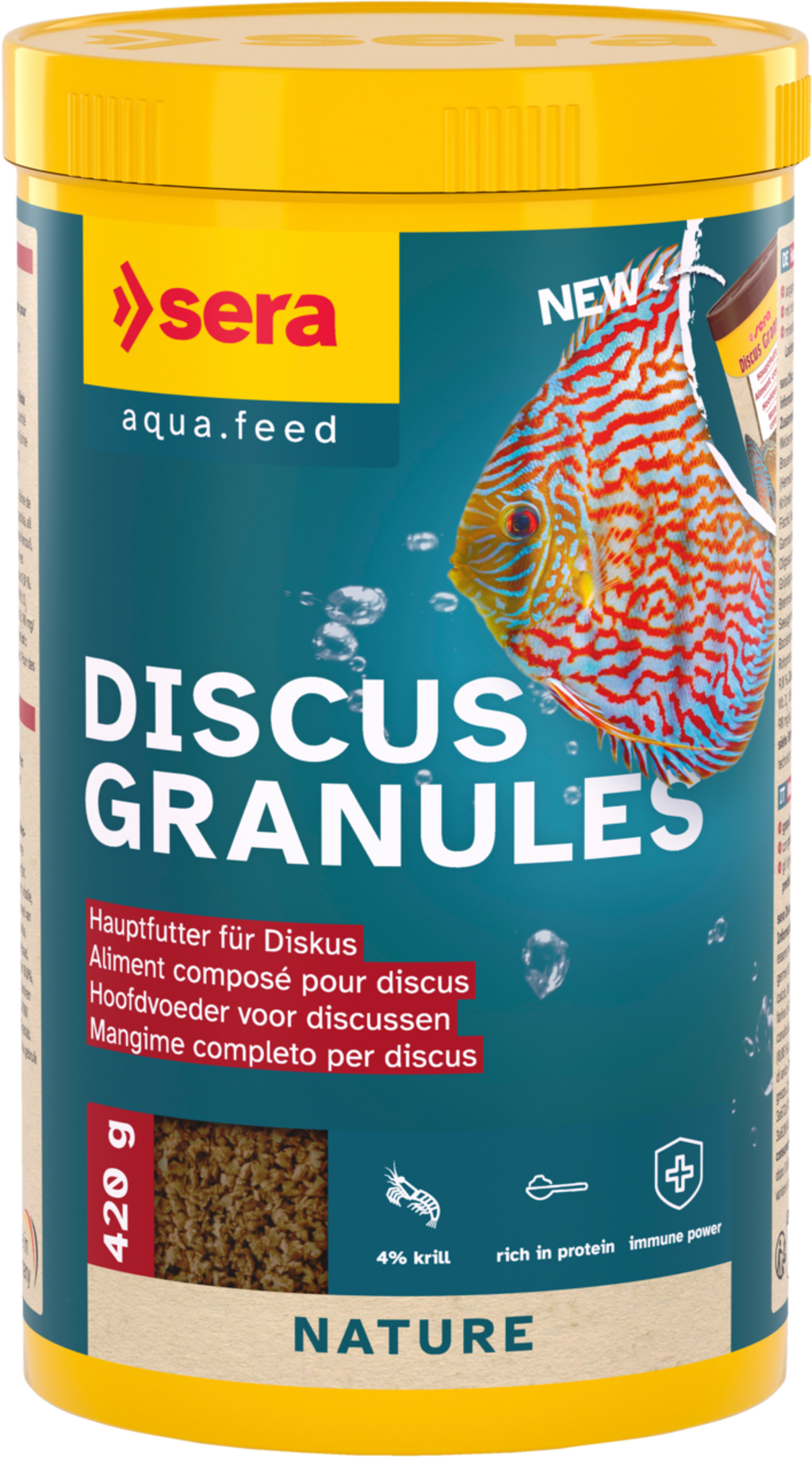 Mit Sera Discus Granulat verhelfen Sie Ihren Diskusfischen zu einem starken Immunsystem und einer verbesserten Fruchtbarkeit!