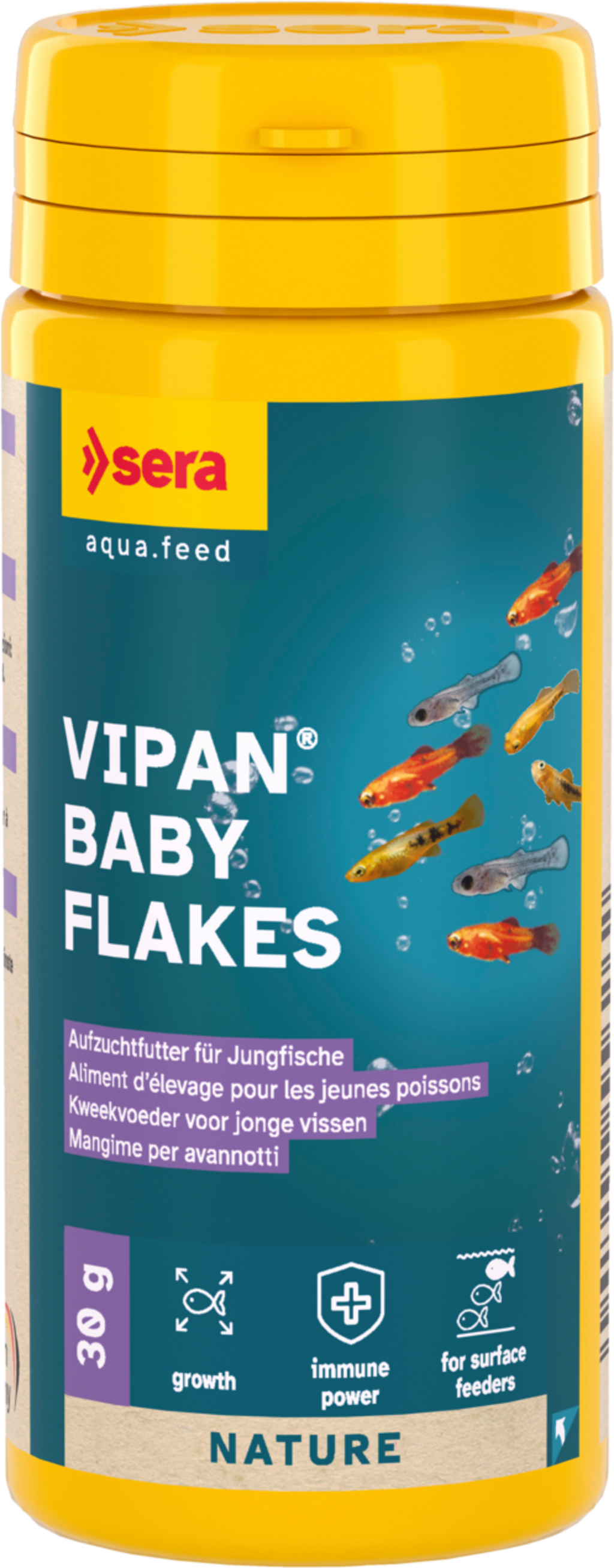 sera Vipan Baby Flakes ist ein Aufzuchtfutter in Mikro-Flocken-Form und für alle an der Wasseroberfläche fressenden Jungtiere im Süßwasseraquarium geeignet.