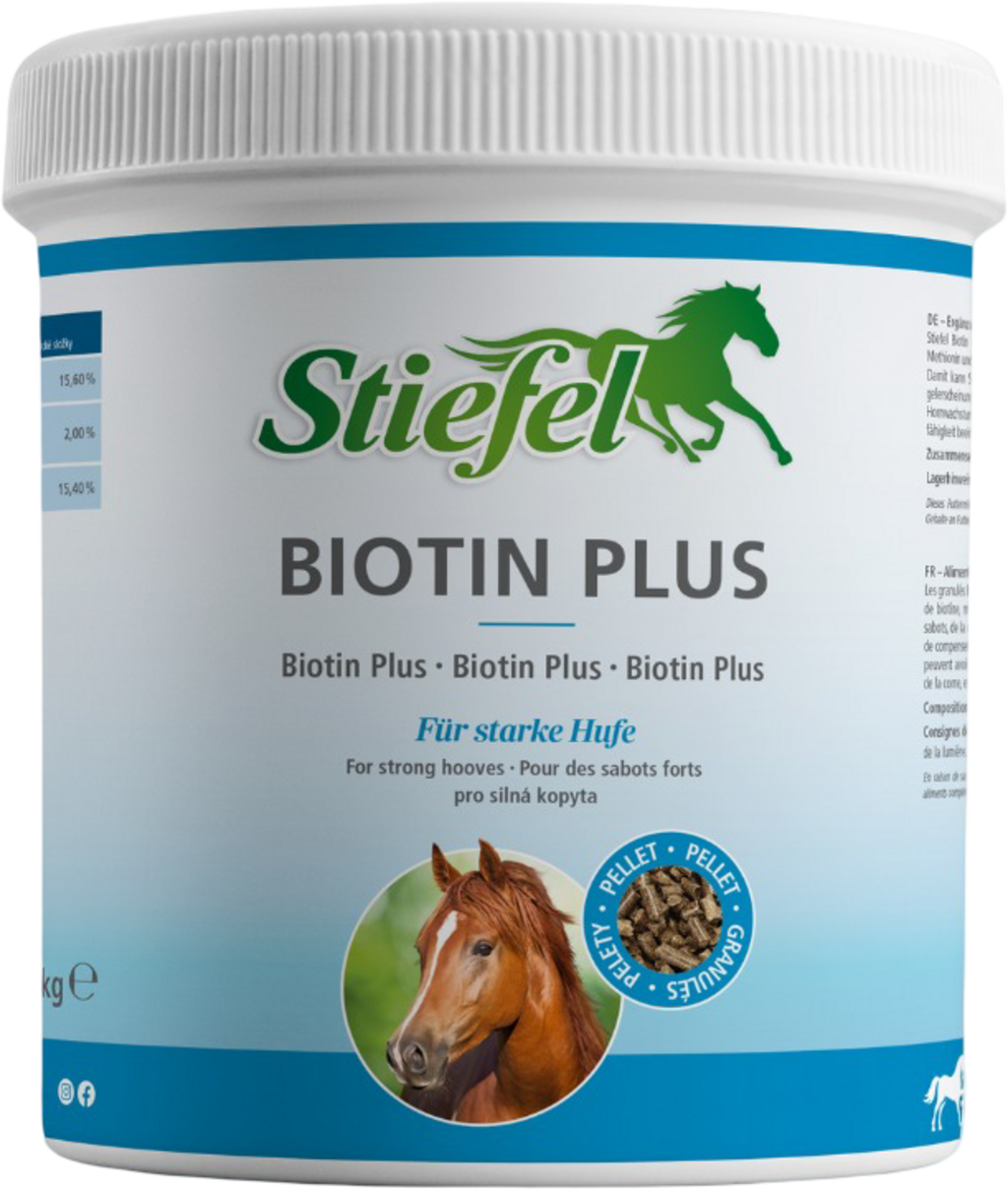 JETZT MIT NEUER REZEPTUR. Stiefel Biotin Plus Pellet enthält die 3-fach Formel aus Biotin, Methionin und Zink für eine optimale Huf-, Horn- und Fellqualität. Damit kann Stiefel Biotin Plus fütterungsbedingte Biotin-Mangelerscheinungen ausgleichen, die sich negativ auf das Huf- und Hornwachstum auswirken und die Elastizität und