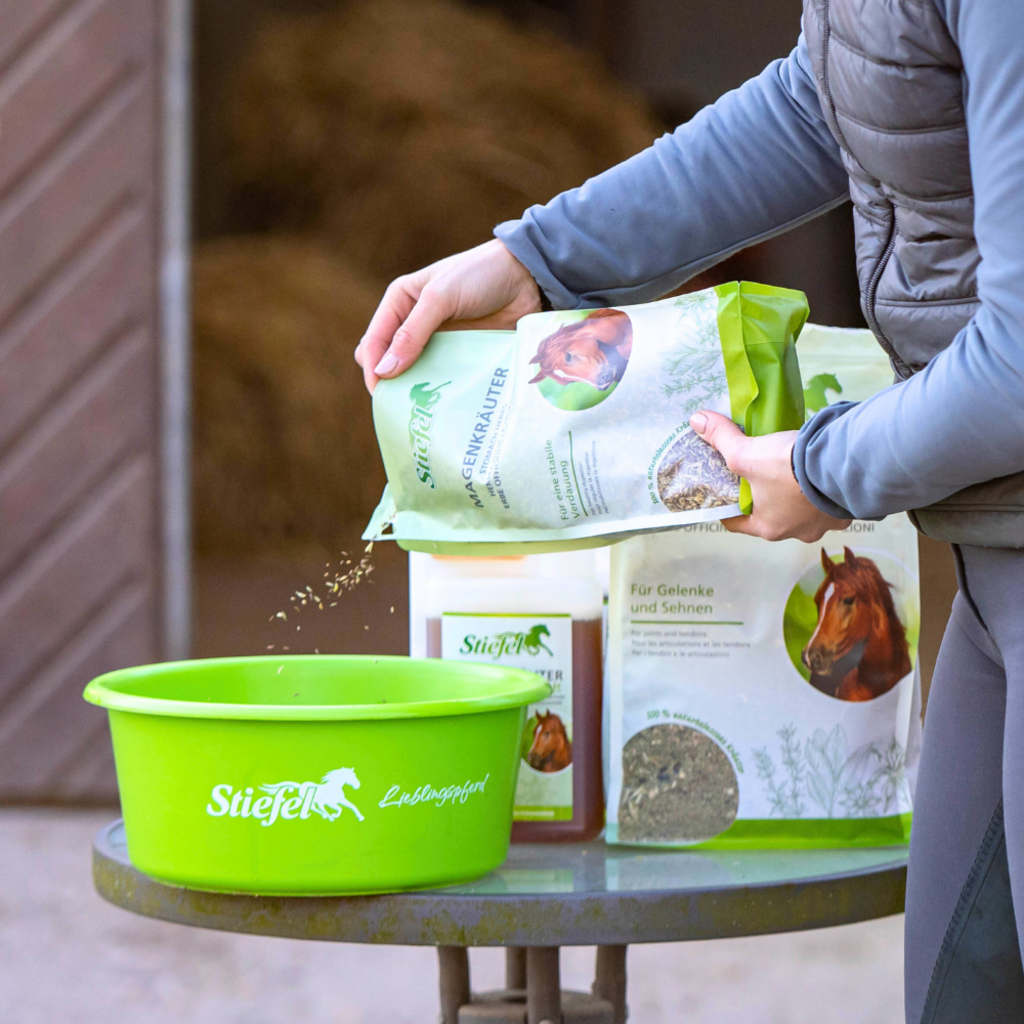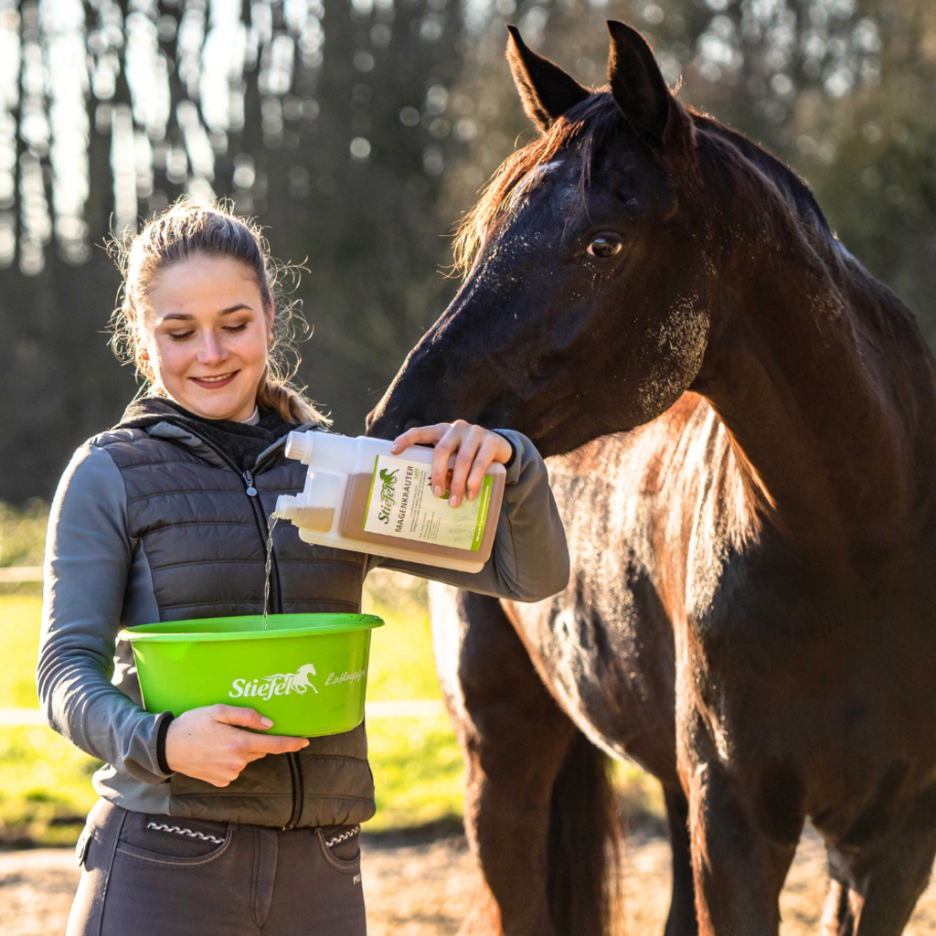 Die Stiefel Futterschüssel eignet sich damit optimal zur Aufbewahrung oder Zubereitung von Futter im Stall, aber auch für unterwegs. Der Deckel schützt vor Ungeziefer und verhindert das Herausfallen von Futter.