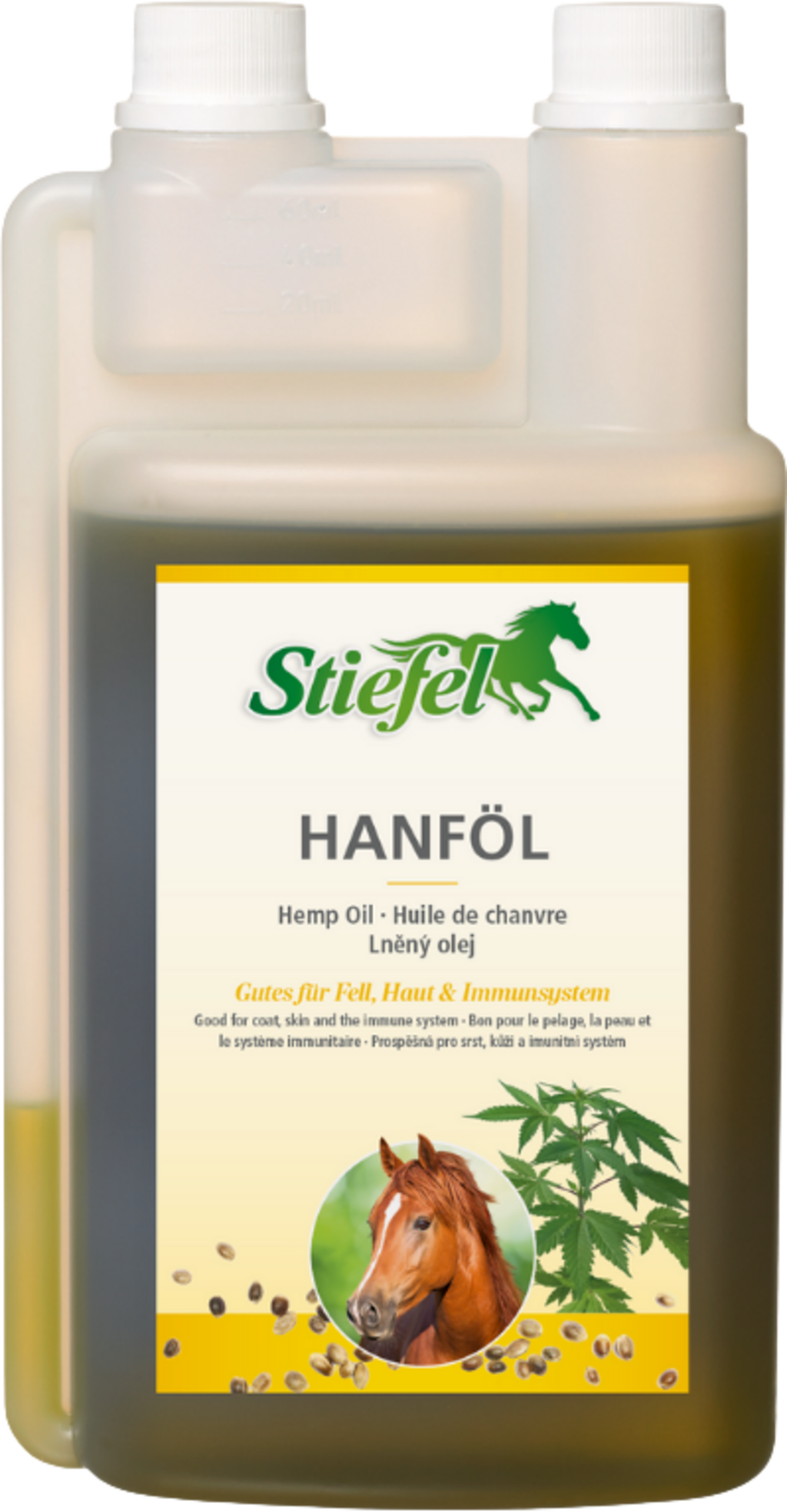 Stiefel Hanföl ist ein 100 % reines Naturprodukt und eine Quelle vieler wertvoller Fettsäuren für Pferde in allen Lebensphasen. Die Inhaltsstoffe können Haut und Fell des Pferdes verbessern und das Abwehrsystem des Pferdes stärken.