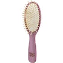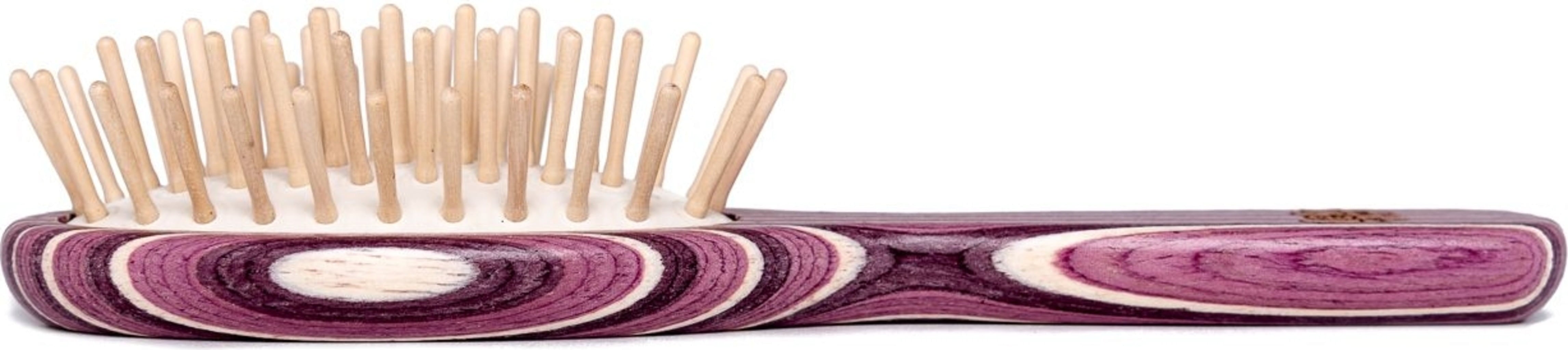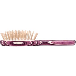 Diese kleine, ovale Bürste besitzt kurze Stifte, die für alle Haartypen geeignet sind. Sie besteht aus Eschenholz, das mit Leinöl sowie Carnaubawachs eingelassen wurde. Die Stifte wurden aus Hainbuche gefertigt und stecken in einem Luftkissen aus Naturkautschuk. Damit werden die Haare optimal sowie angenehm gekämmt, ohne sie elektrostatisch aufzuladen.