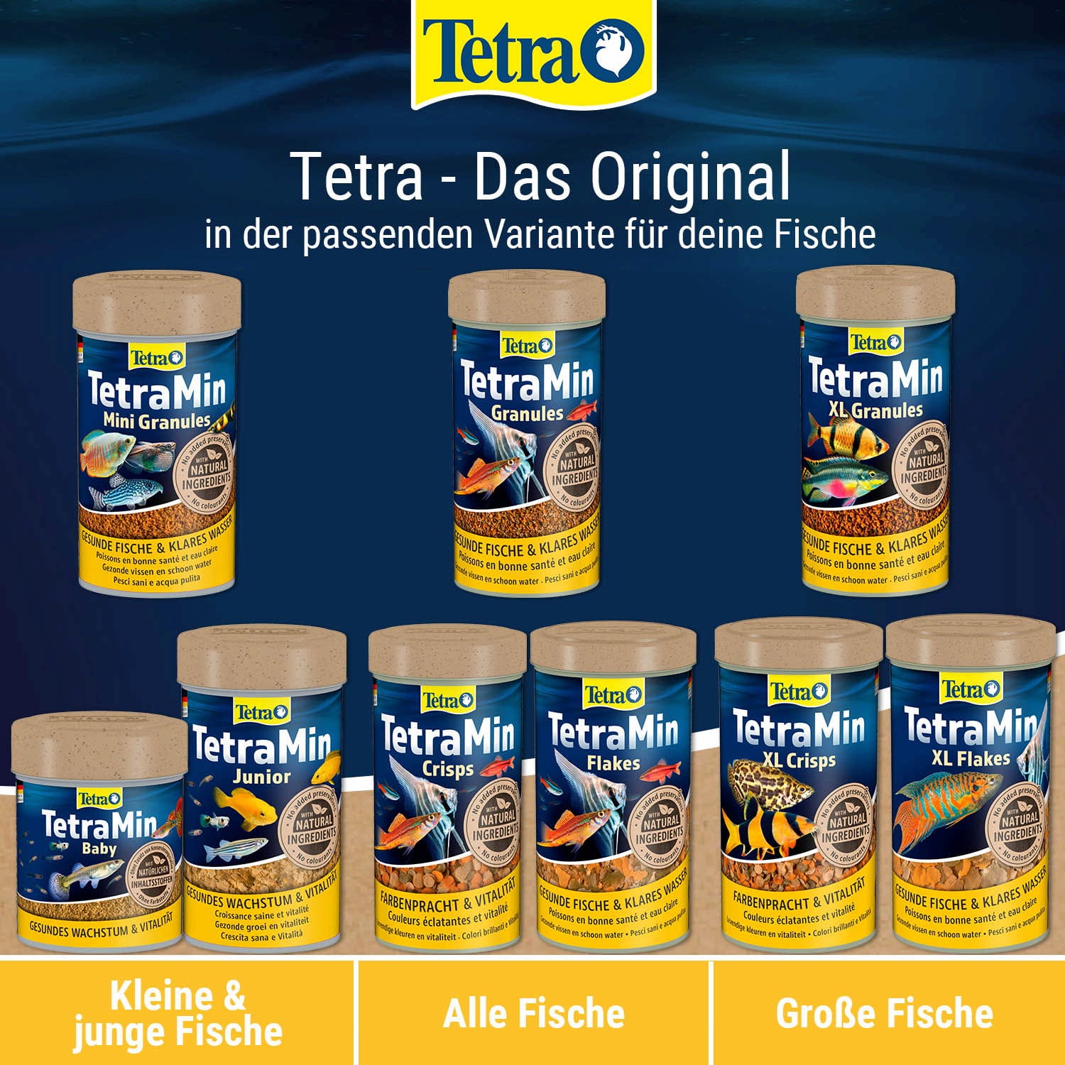 • 4 Spezialflocken für eine gezielte und abwechslungsreiche Ernährung aller Zierfische