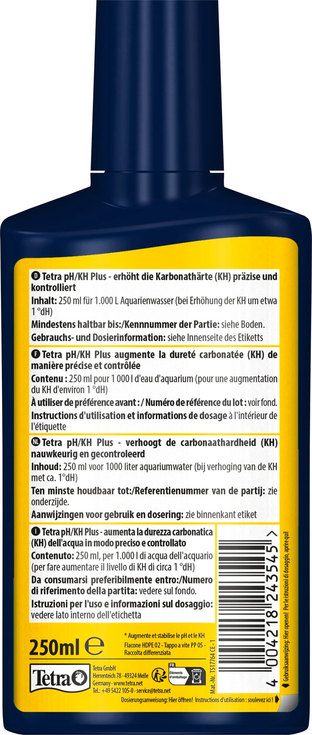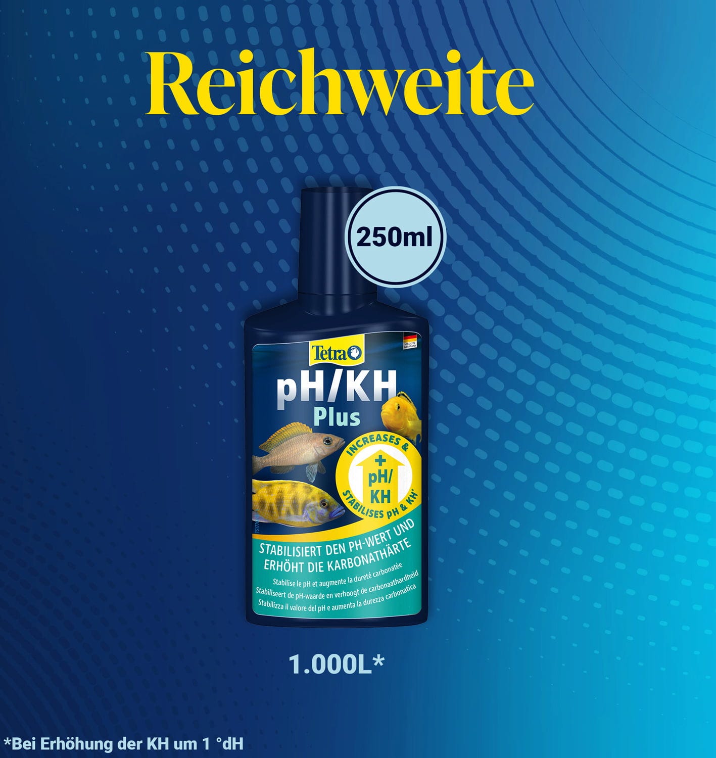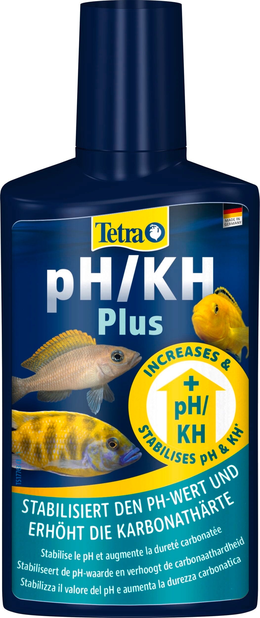 - Um die Karbonathärte (KH) deines Aquarienwassers um ca. 1 °dH anzuheben, gibst du einfach 5 ml Tetra pH/KH Plus auf je 20 Liter Beckeninhalt.