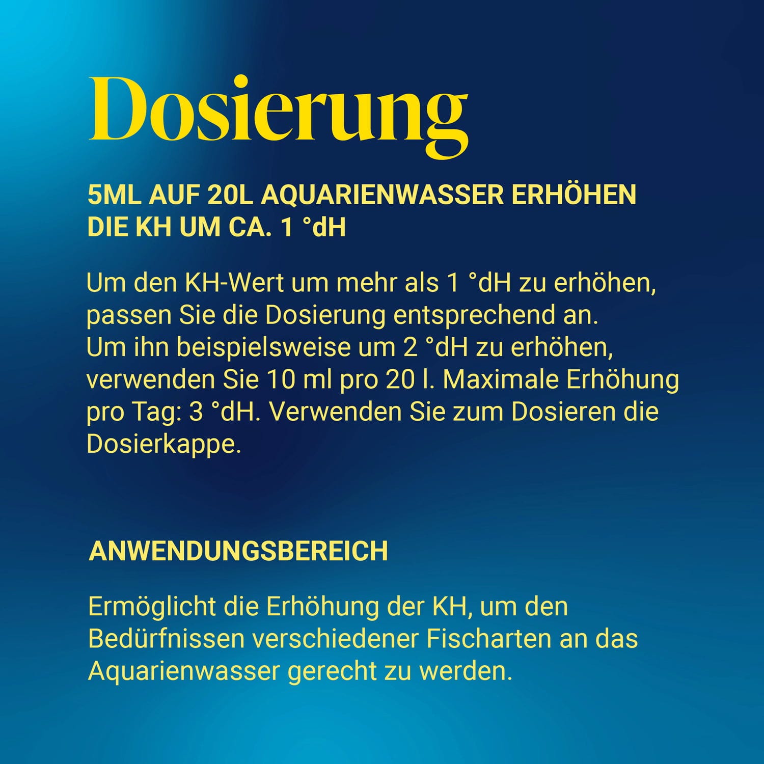 - Du kannst die Menge entsprechend skalieren, wenn du eine stärkere Erhöhung wünscht – bei 10 ml auf 20 Liter steigt der Wert beispielsweise um etwa 2 °dH.