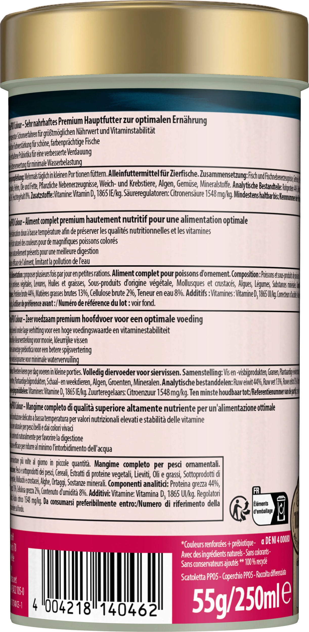 Wenn du das natürliche Leuchten deiner Fische unterstützen möchtest, ist dieses Premium-Futter deine ideale Wahl. Dank des schonenden Niedrigtemperatur-Verfahrens bleiben die Nährstoffe erhalten, während das integrierte Farbkonzentrat mit natürlichen Karotinoiden die Pigmentierung deiner Lieblinge sanft unterstützen kann.