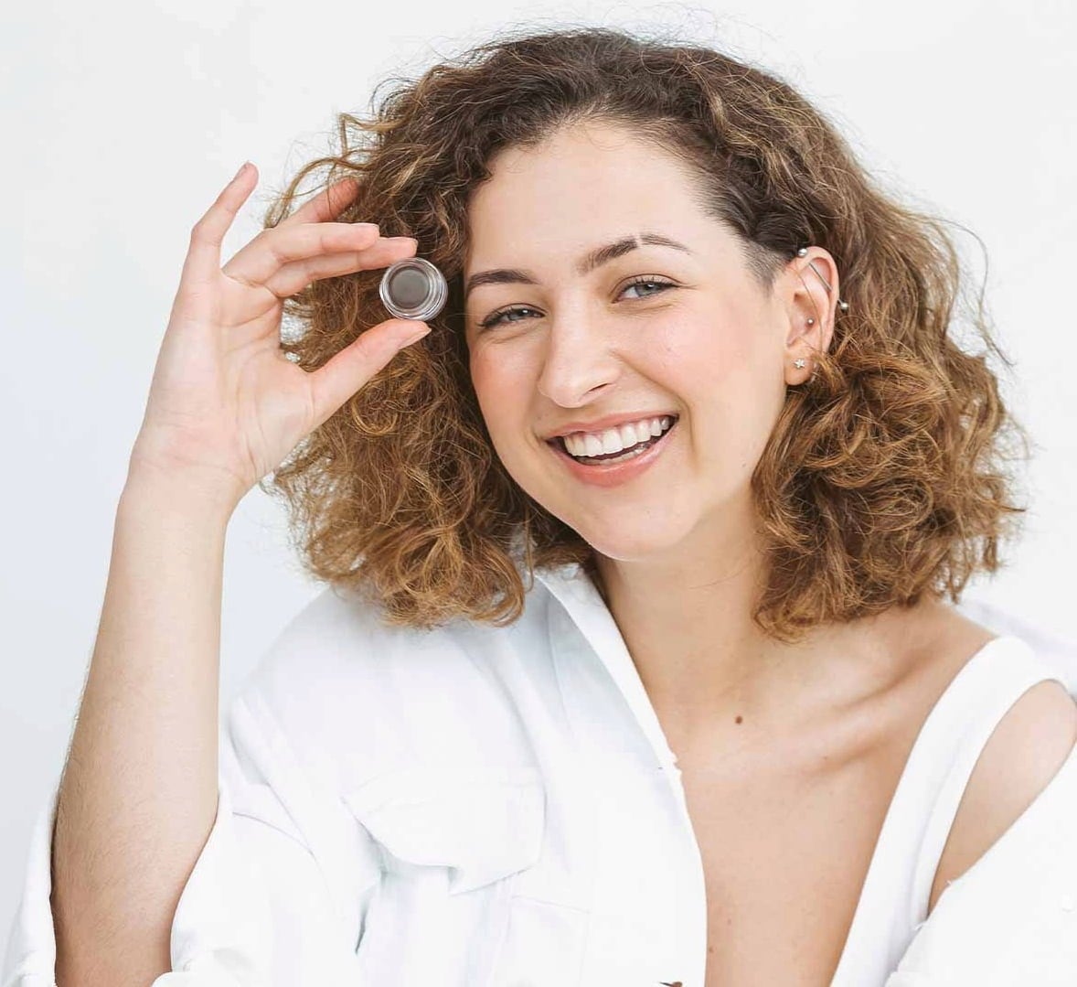 - Augenbrauen: Mit einem Pinsel die Pomade auftragen und die Augenbrauen in Form bringen bzw. kleine Lücken damit auffüllen.