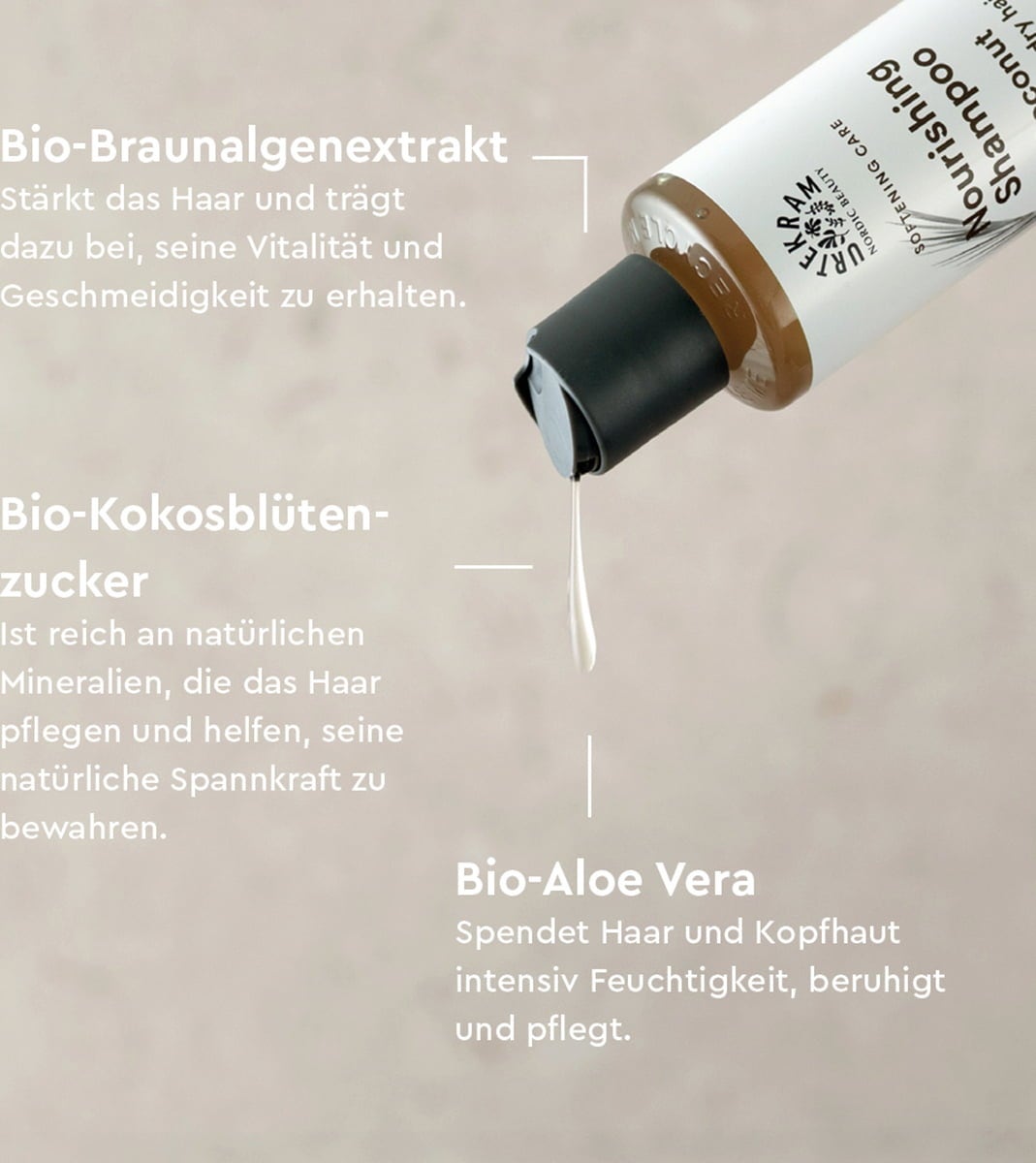 Dieses wundervoll duftende Kokos-Shampoo von URTEKRAM reinigt normales und trockenes Haar mit milden Kokostensiden. Bio-Kokosnektar, Bio-Braunalgenextrakt und Extrakte aus Gänseblümchen spenden intensive Pflege.