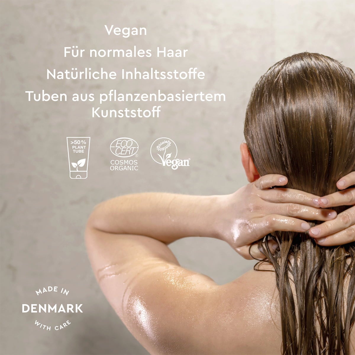 - Nach der Haarwäsche in die feuchten Haare einmassieren und 2-3 Minuten einwirken lassen.