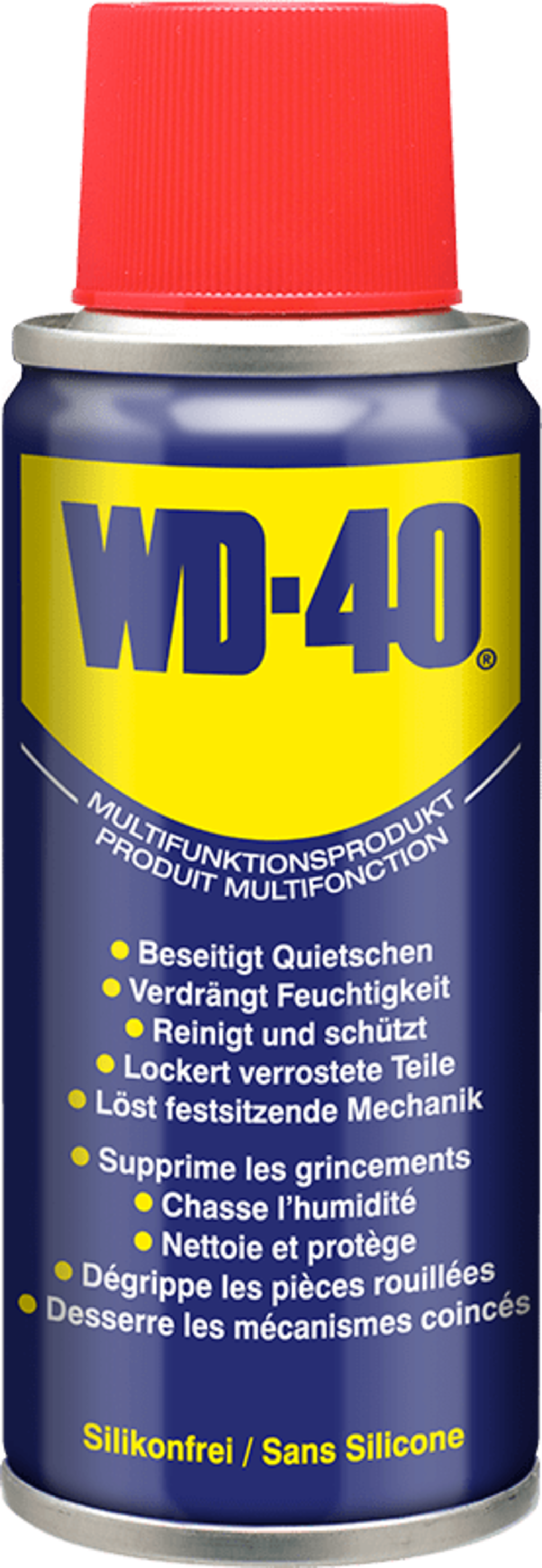 Das bekannte WD-40 Multifunktionsspray schützt Metall vor Korrosion und Rost, verdrängt Feuchtigkeit und schmiert fast alles. Es entfernt kann Fett, Ruß und anderen Schmutz von Oberflächen entfernen.