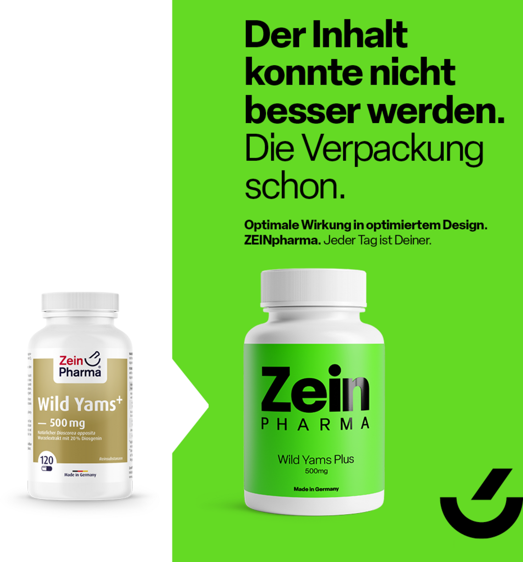 Die Wild Yams Plus Kapseln von ZeinPharma® bieten dir pro Kapsel 500 mg Wild Yams Wurzelextrakt und davon 20 % Diosgenin. Zusätzlich sind die Kapseln mit Vitamin E und Zink angereichert.
