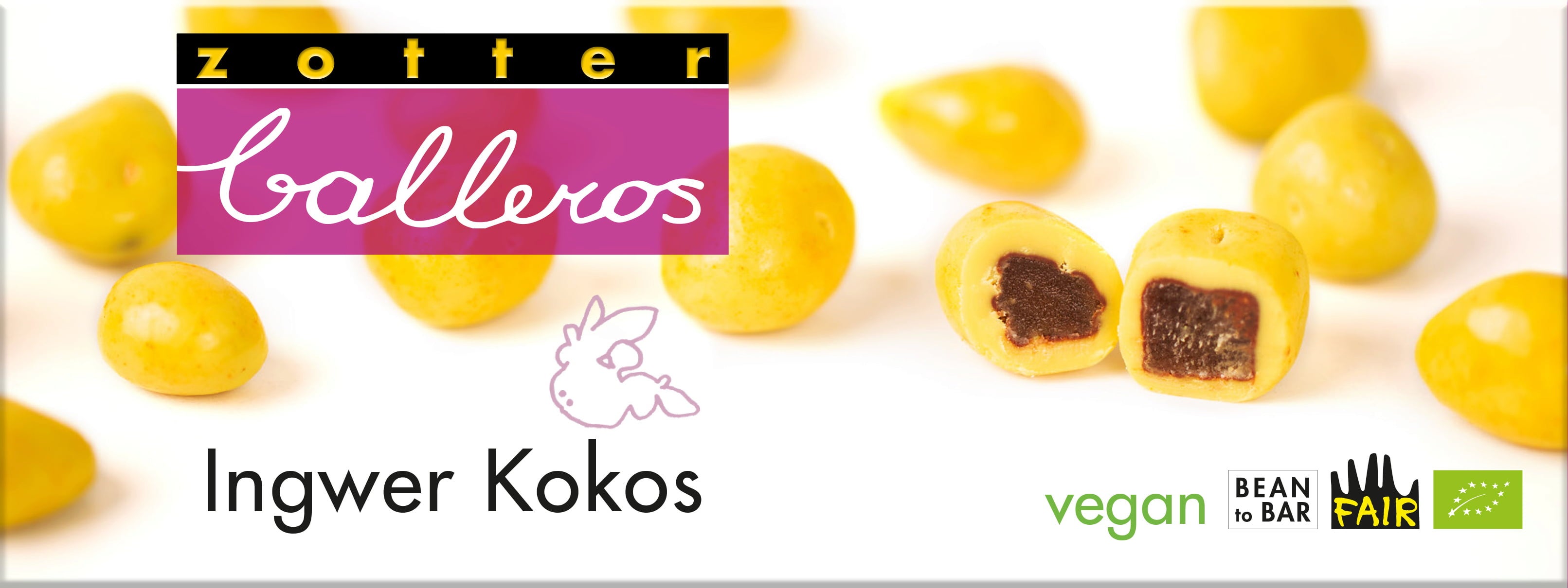 Zotter Schokolade Bio Balleros Ingwer in Kokos, 100 g