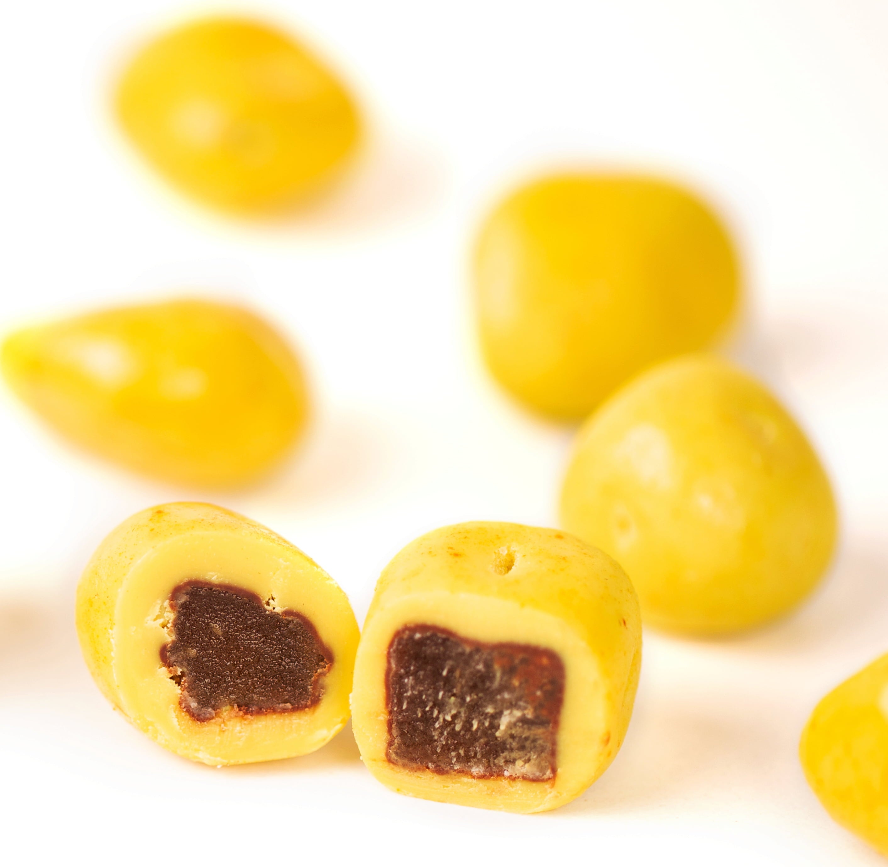 Hier erwartet dich ein abwechslungsreiches Geschmacksfeuerwerk, das es in sich hat. Außen ayurvedisches Gewürzpulver, dann eine süße Schicht Kokosschokolade und im Kern schließlich exotisch-süßer und scharfer australischer Ingwer. Diese Kombination schmeckt einfach toll.
