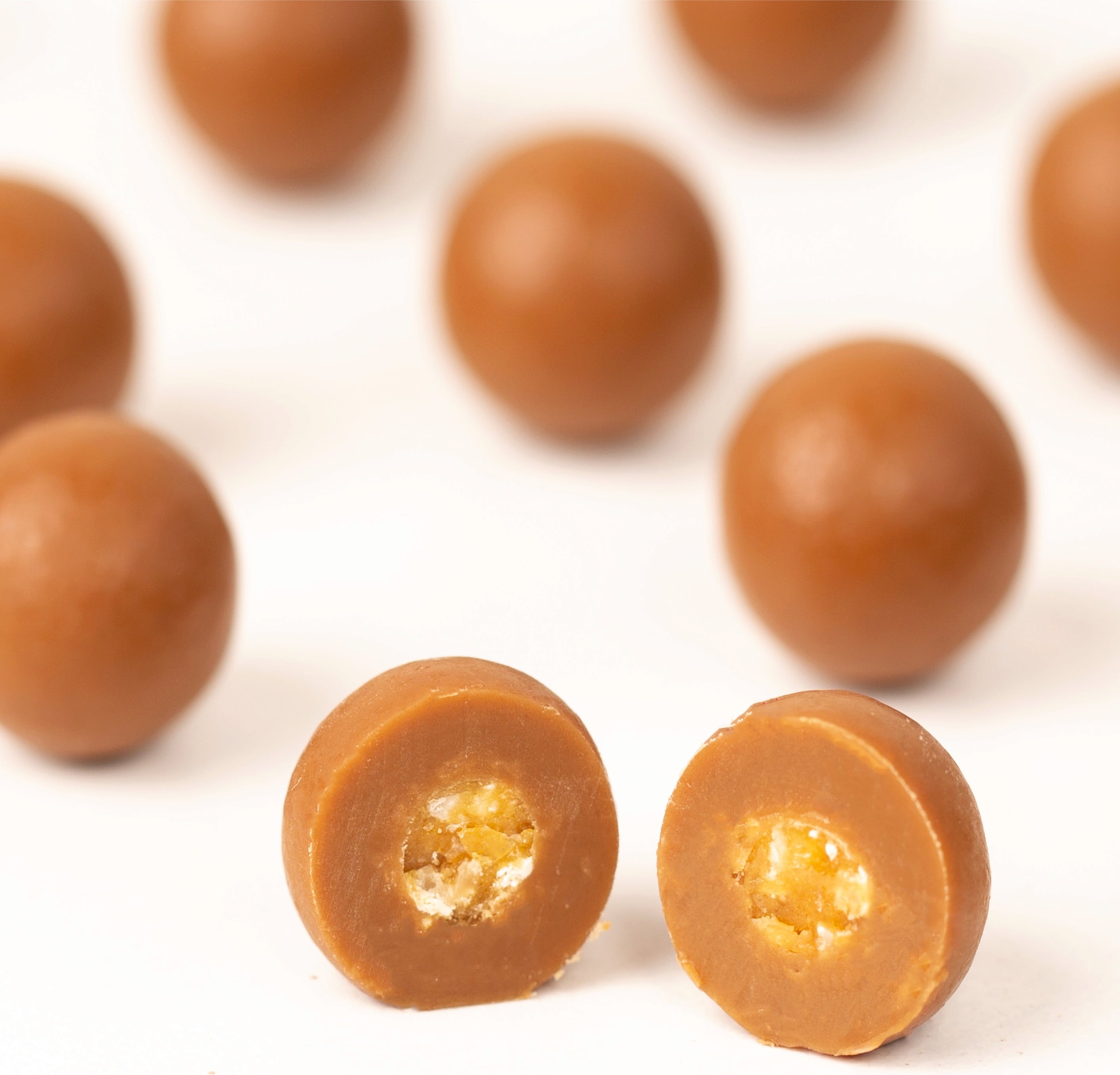 Diese kleinen Bällchen haben es in sich: innen eine knackige Mandelmania-Krokantkugel und außen zart schmelzende, bonbonsüße Karamellschokolade. So entstehen echte Genussperlen, die zum selbst Naschen genau so toll sind wie zum Verschenken.